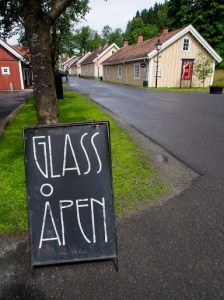 Det första jag fick syn på var denna skylt. I typ en halv sekund så tänkte jag ”åååh, detta blir bra” men sen kom jag på att glass betyder glas på norska… Men men, vi gick väl in och kollade på glas, inte fy skam det heller.