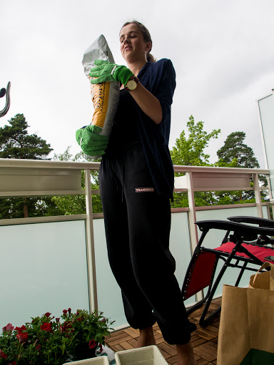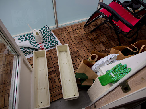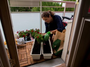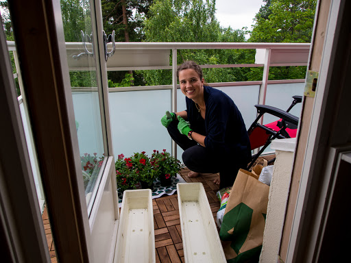 Att hälla jord är inte så himla enkelt! Speciellt inte om man står på en balkong och helst vill undvika att hälla något utanför.
