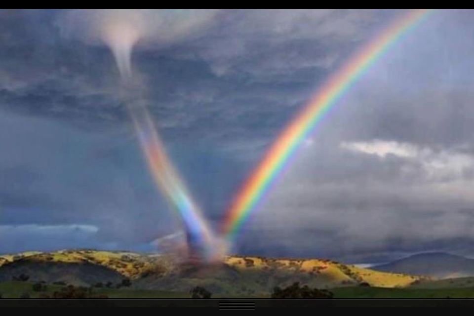 Alltså, hur cool är inte denna bild?! Det är alltså en regnbåge och en tornado som möts. Naturen är grym!