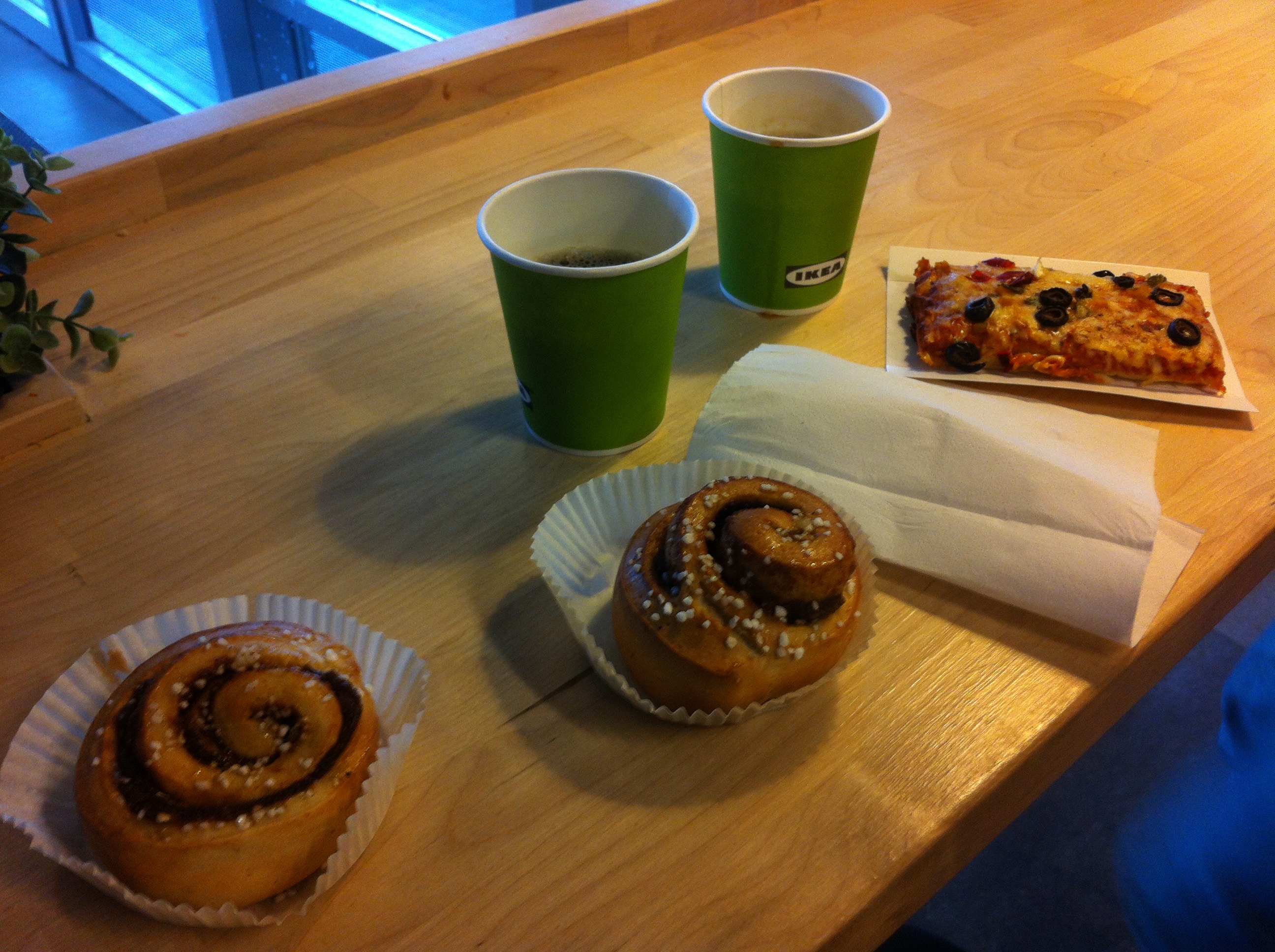 Så Ikea tog typ hela dagen igår, vi hittade en massa saker som han behövde, några saker jag behövde, några saker jag inte behövde men ville ha ändå samt så hittade vi inte vissa saker vi ville haft. En vanlig dag på Ikea helt enkelt. Men det mest fantastiska är ju att vi fick hela fikat på bilden ovan för 15spänn.