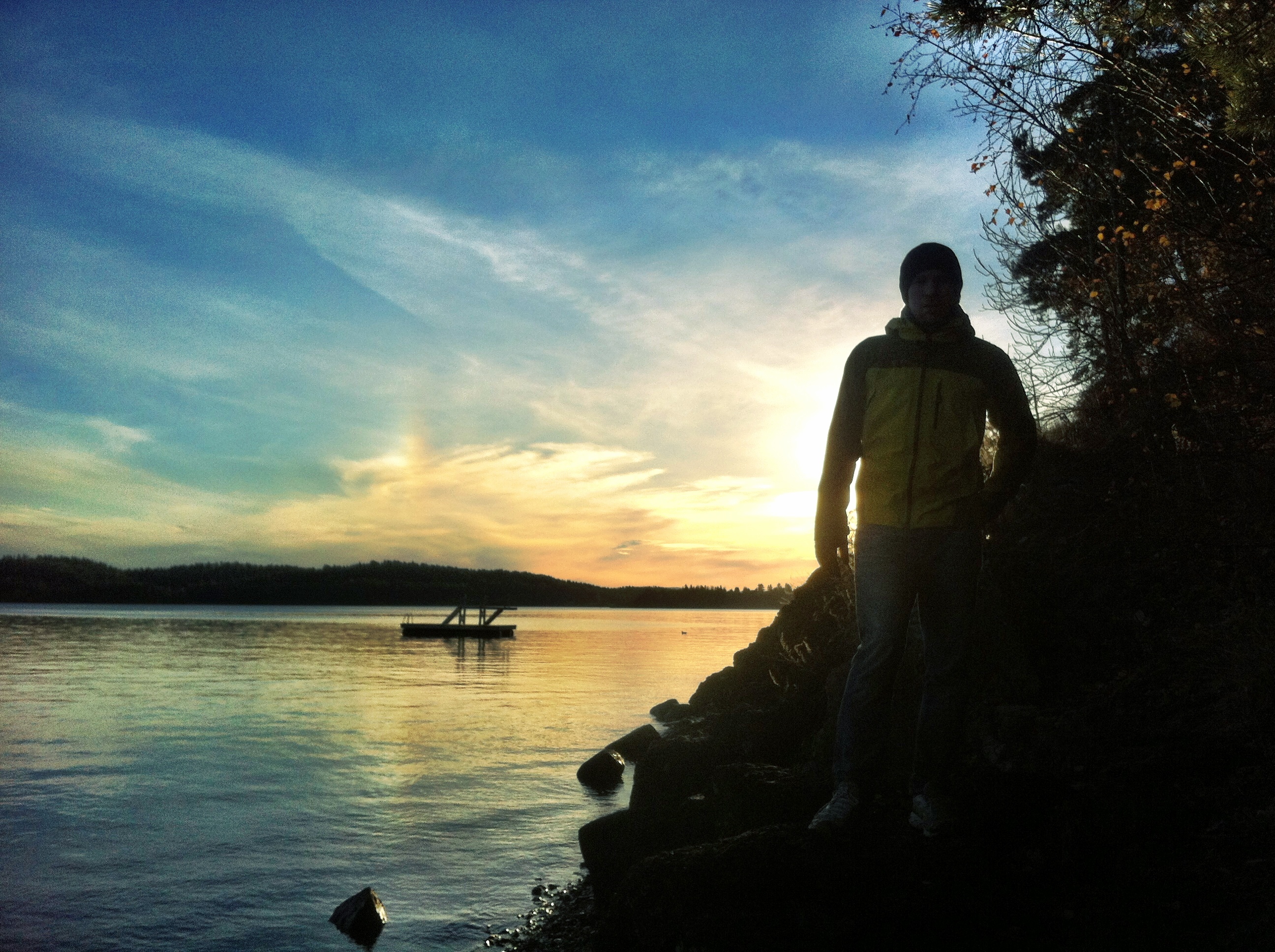 Bergklättring längs vattnet. Såg ingenting i motljuset…