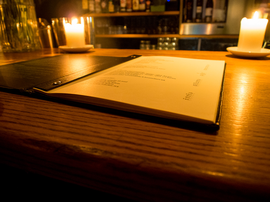 Vi hade tur och fick plats i baren och kunde då läsa in oss på menyn medan vi väntade, perfekt.
