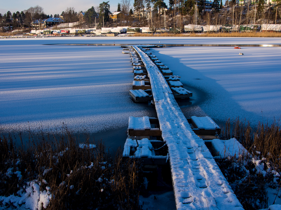 Idag vaknade vi upp till en blå himmel och snön gnistrade. Vi kom dock inte iväg på någon skidåkning (tror det är startsträckan, vi vet inte vilka spår som finns än och skidorna är inte vallade…) men vi tog en promenad. Det var hur mycket folk som helst ute och promenerade, alla njöt vi av vintern som äntligen kommit.
