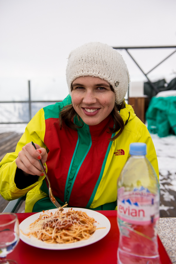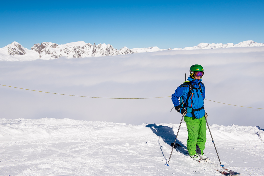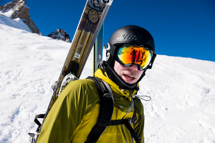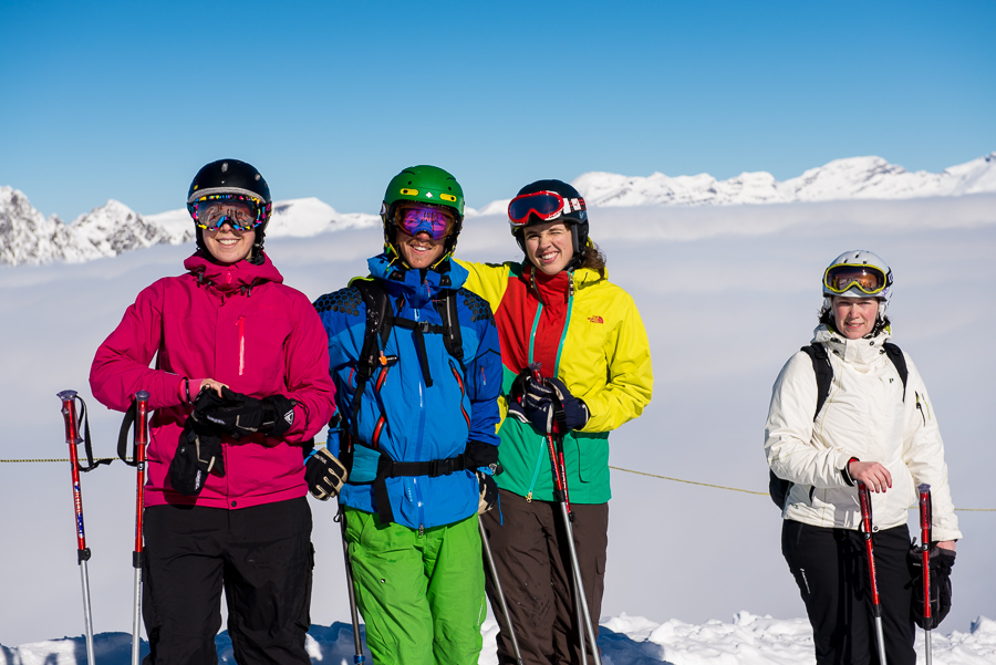 Vi hade tillsammans bara tre ryggsäckar som det gick att spänna fast skidor på så killarna var så snälla att de bar allihop. Jag åkte på de coola K2-laggen som David bär på!