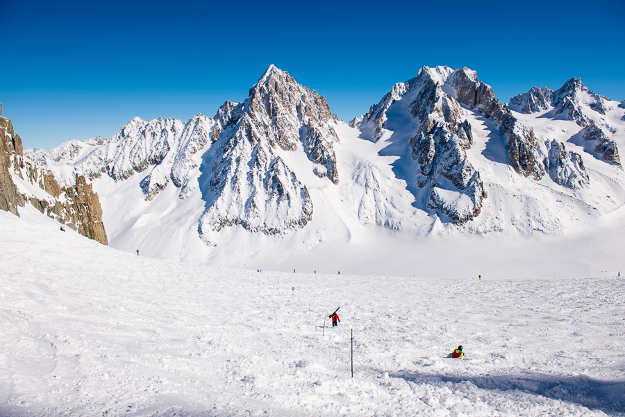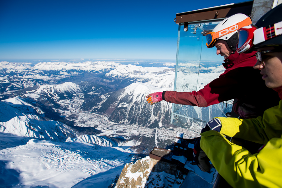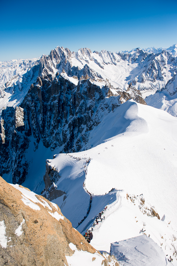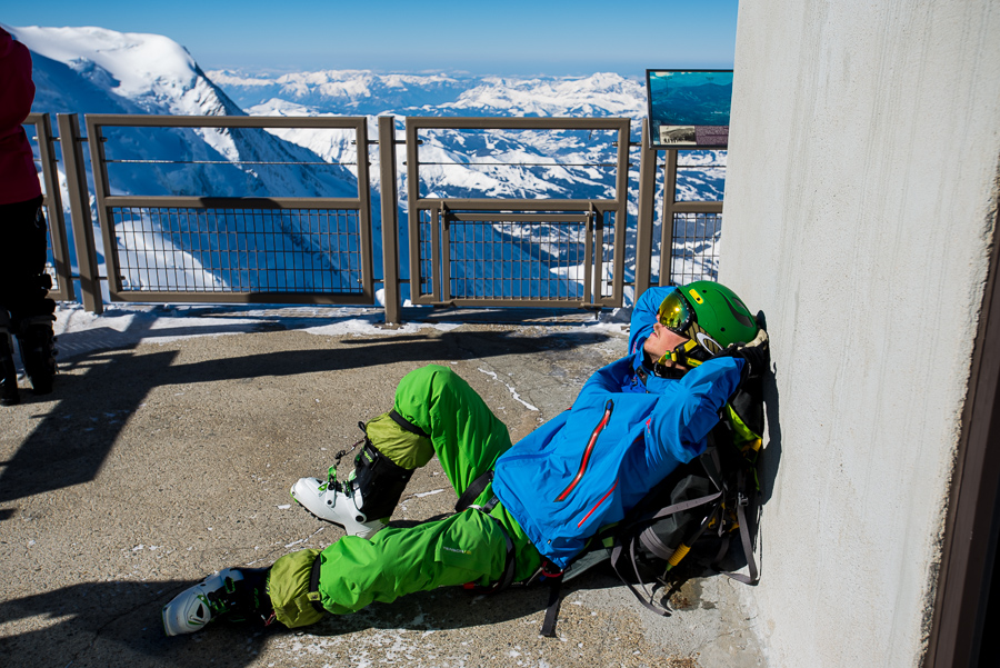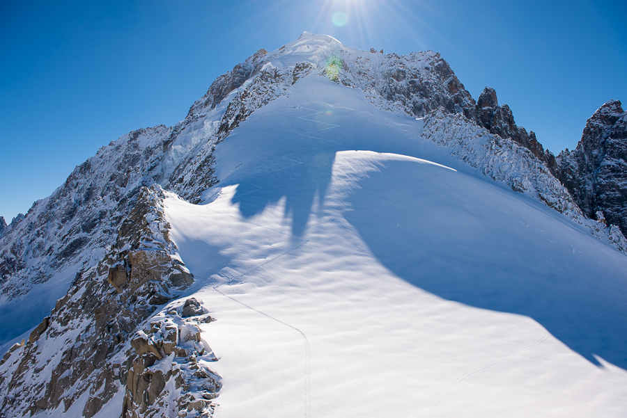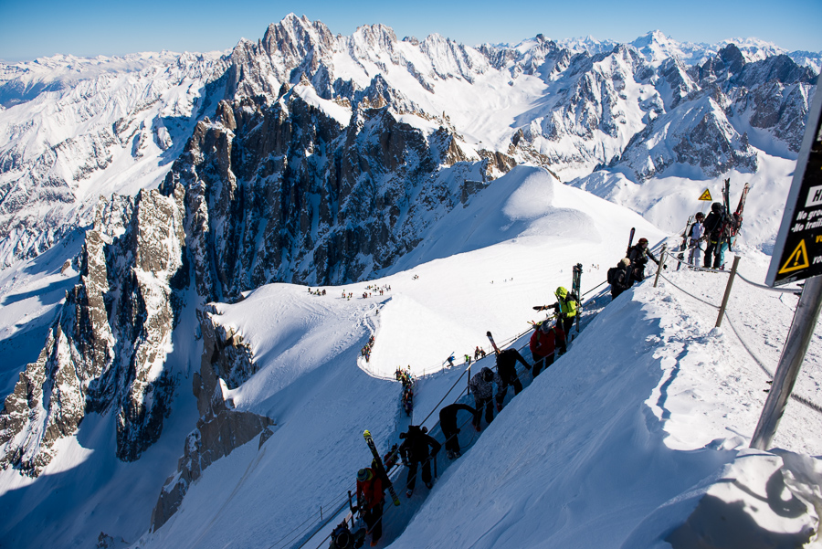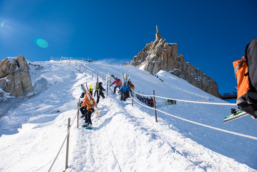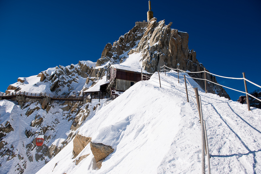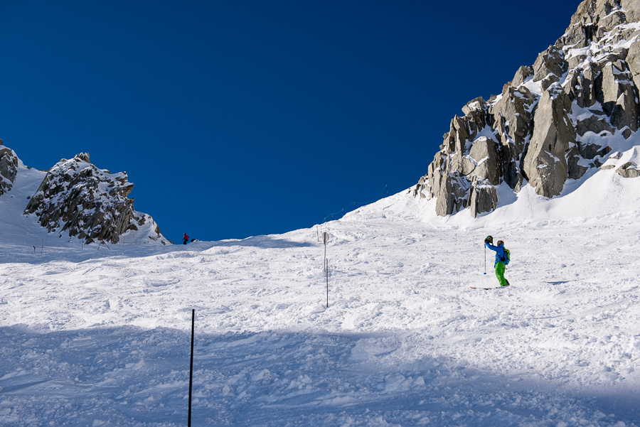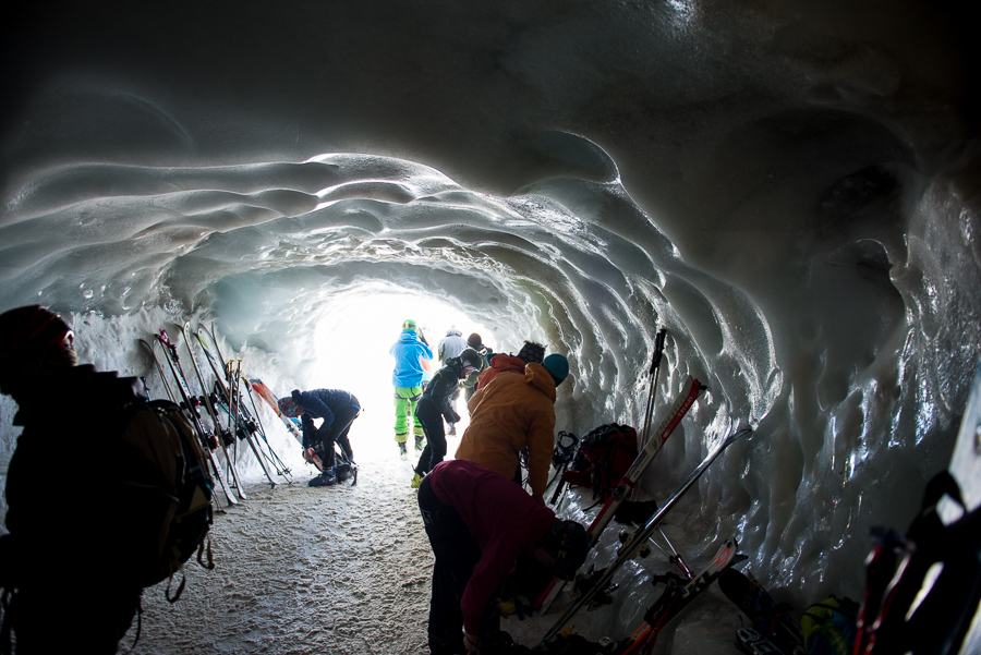 När en är uppe på Aiguille du Midi så får en gå in i denna isgrotta för att på andra sidan komma ut till ”promenadvägen” som leder en ner till ”backen”.