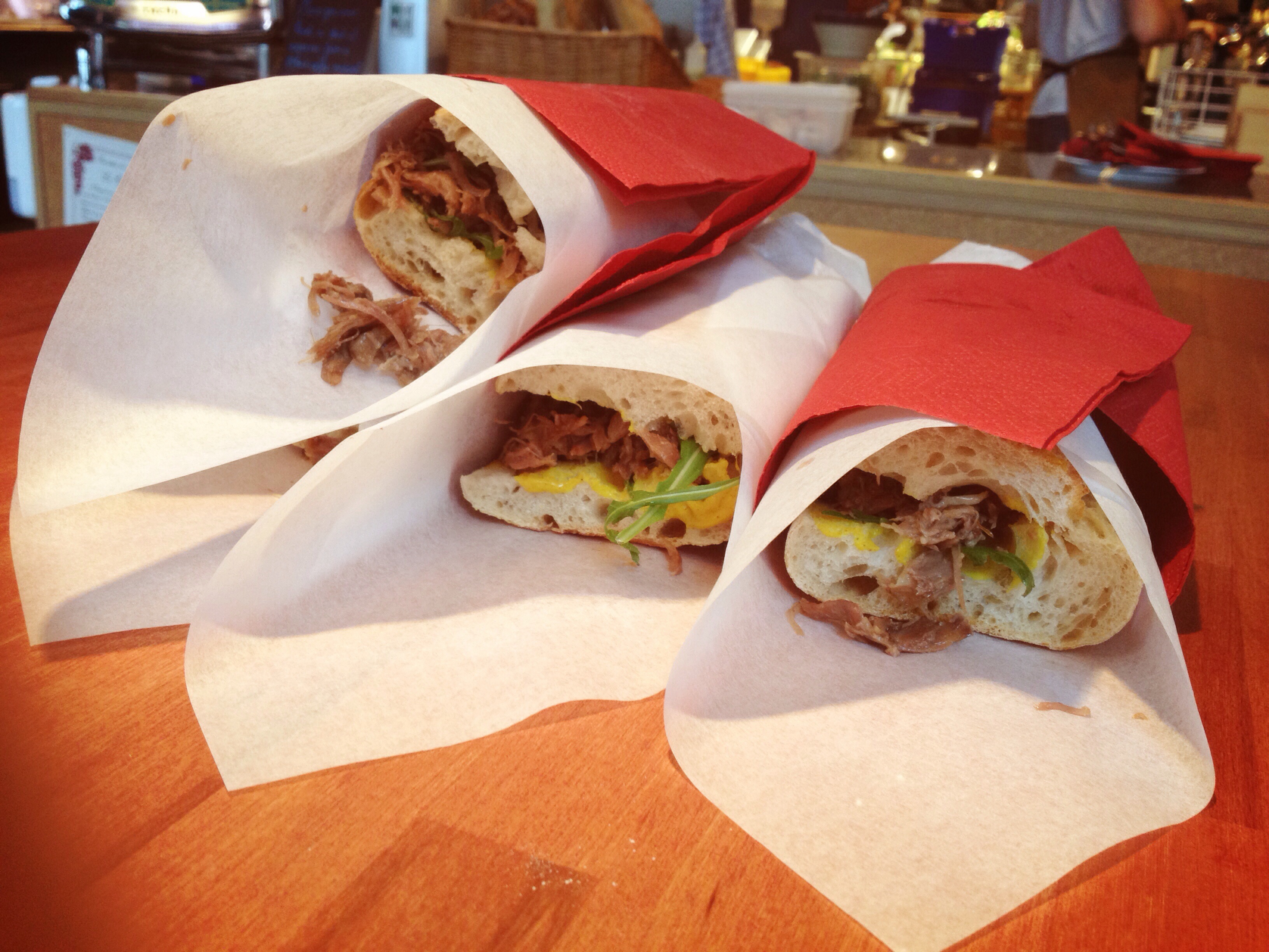 Där kollade vi på matvaror och beställde varsin duck sandwich. Vi kollade även in vinlistan.