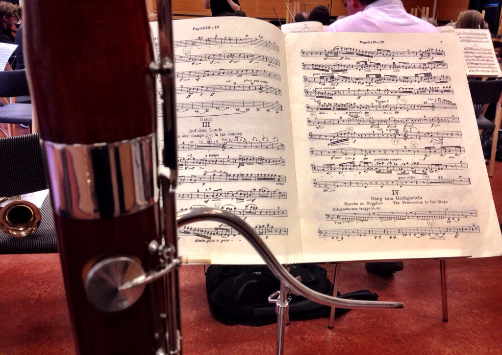 Så sitter jag på orkesterövning igen. Denna gång var det Oslo symfoniorkester (de jag spelade Verdi med i höstas) som behövde extra fagottister. Konserten är först i höst men första övningen är nu. Anledningen till att jag kan blogga och inte spelar just nu beror på att det står ”sats II tacet” i mina noter. Nej, nu ska jag fortsätta lyssna på de andra.