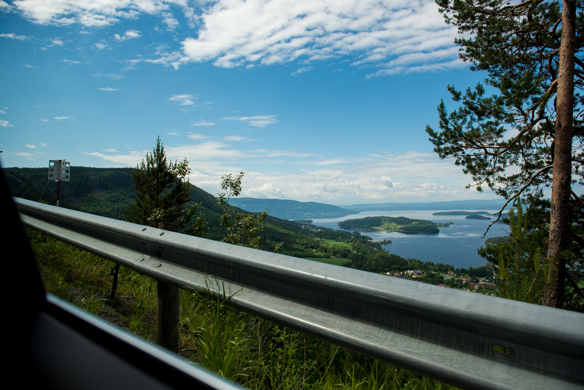 I lördags tog vi bilen i riktning mot Hønefoss men svängde av i Sundvollen för att gå på tur. Utsikt över sjön Tyrifjorden från bilen.
