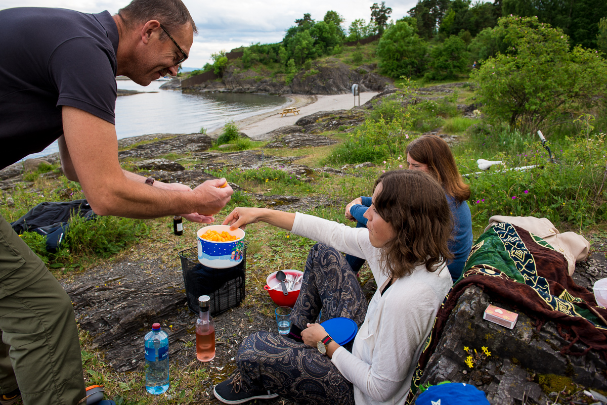 När mina föräldrar var här så utnyttjade vi cyklarna även på lördagskvällen. Vi spanade in Fornebu och hade packat för picknickskalas.