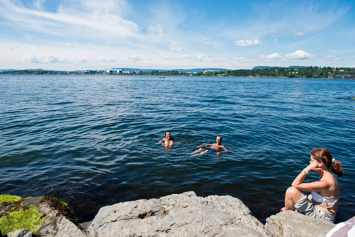 Nu har föräldrarna åkt hem men vi har haft en fin helg. Idag vaknade vi till sol och vi bestämde oss för att ta en cykeltur (fördelen med att David äger tre cyklar). Så vi packade badkläderna och drog till Bygdøy.