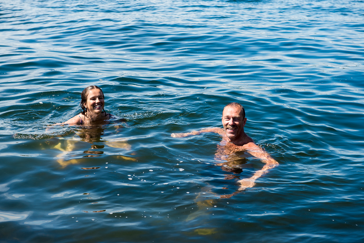 Det var bara jag och pappa som badade, lite kallt men helt okej.