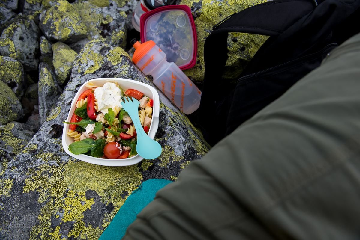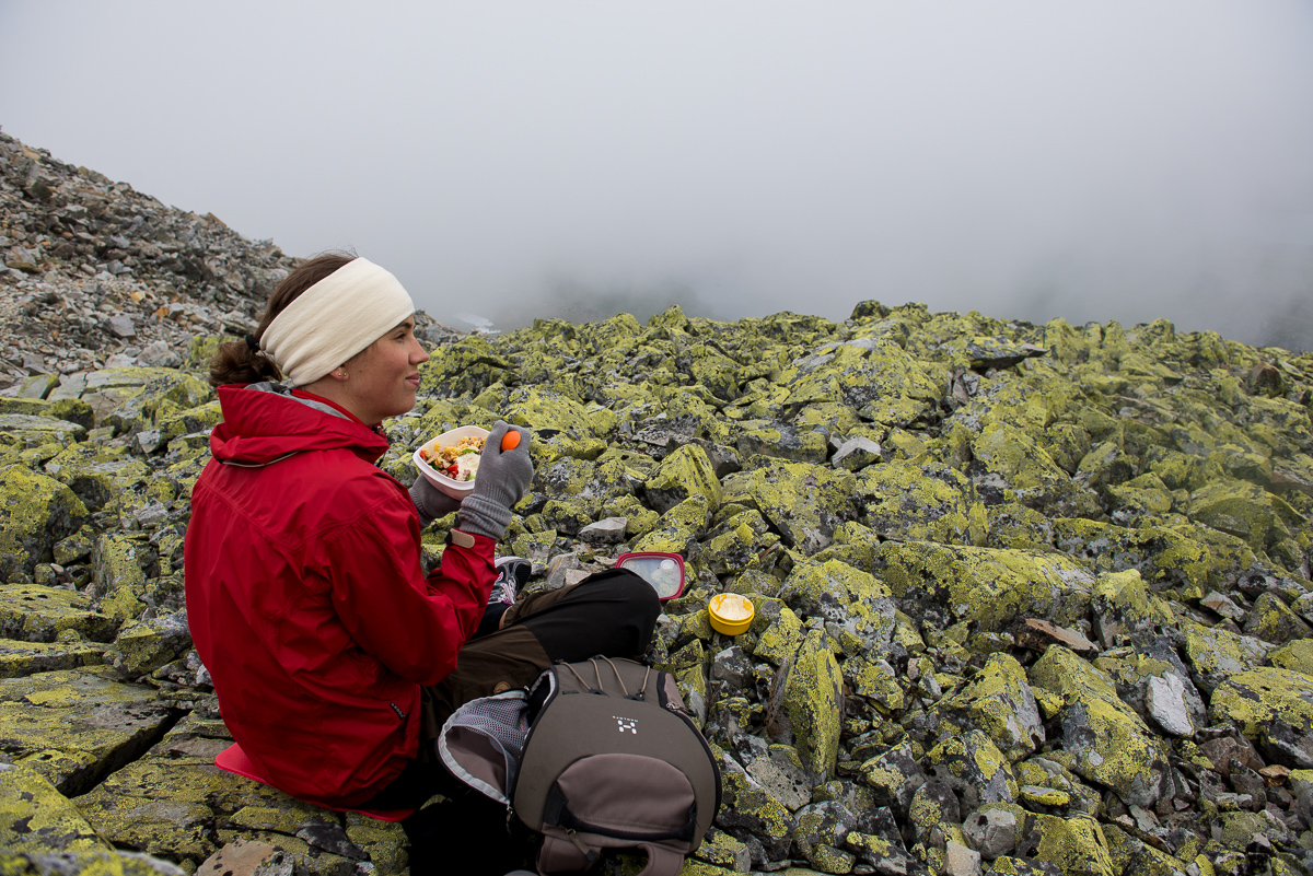 När vi nådde Gaustahytta så satte vi oss en bit ifrån med vår medhavda pastasallad. Trodde/hoppades ju att lunchutsikten skulle ha blivit lite bättre men men.