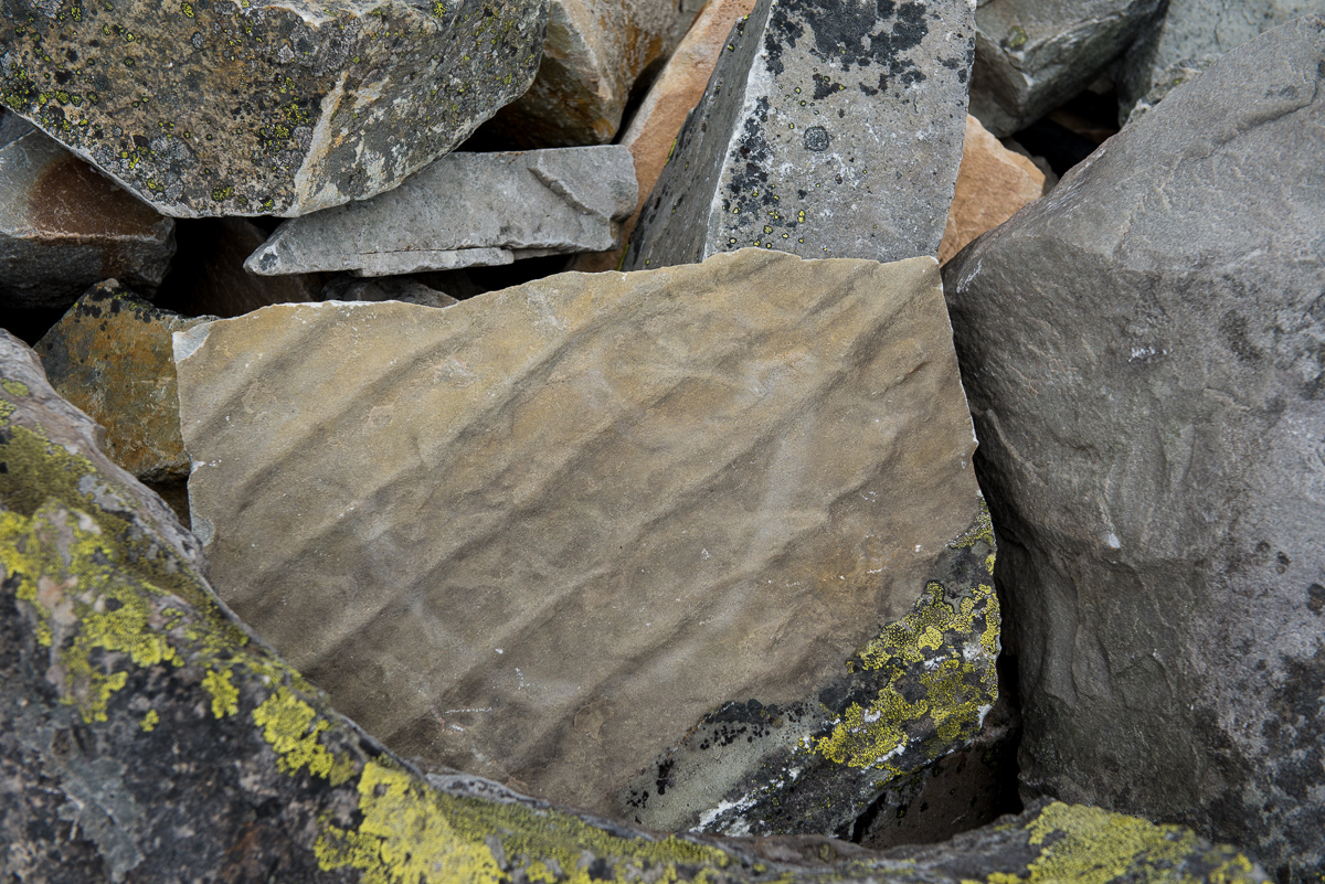 Gaustatoppen är typ gjord av ihoptryckt sand som pressats ihop och uppåt (om jag läste skyltarna korrekt). Så det som syns på bilden är rester från när denna sten befann sig på havsnivå istället för ca 1850 m.ö.h. som den gör här.