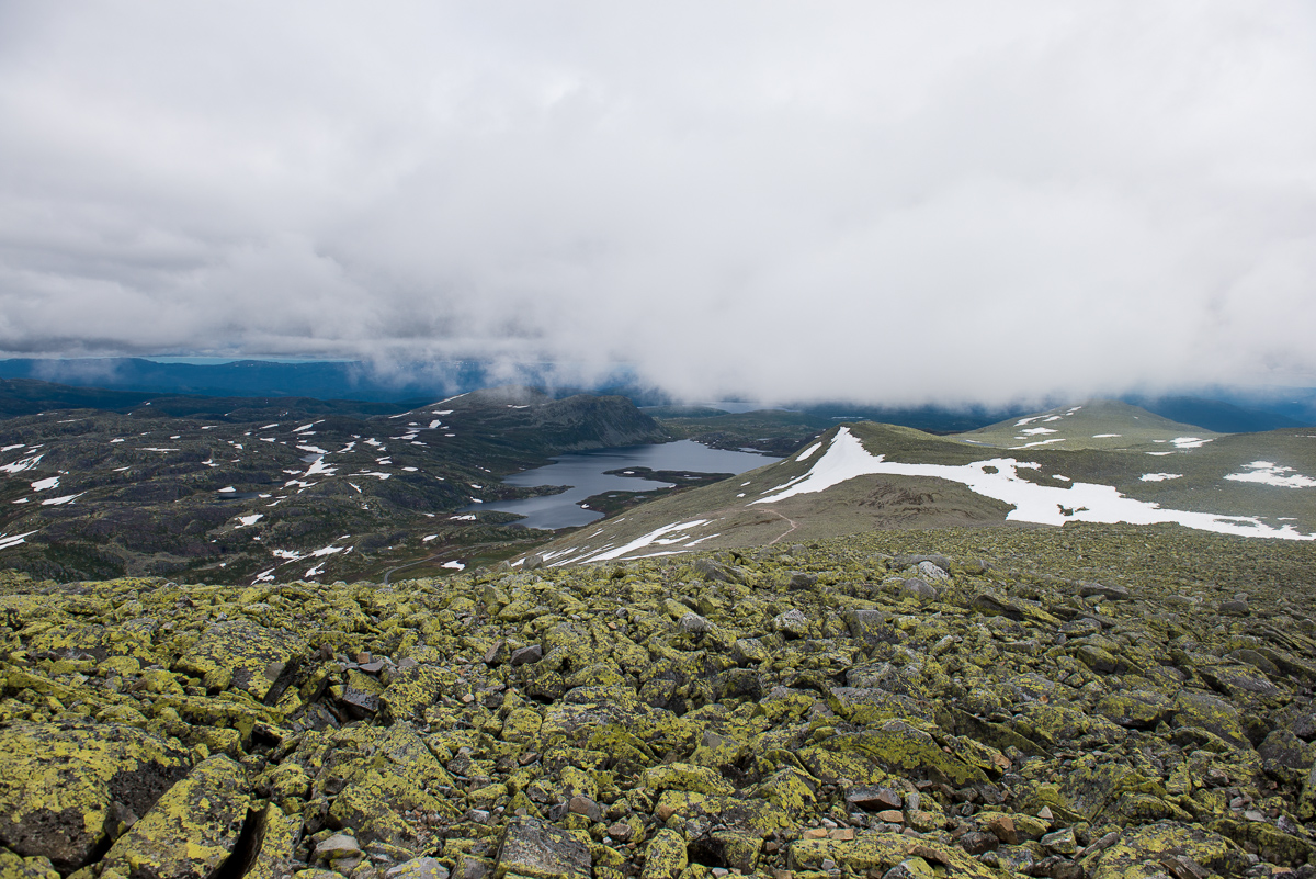 Här är vi nästan nere vid bilen igen, när vi då vände oss om så hade molnen skingrats och vi såg toppen långt där uppe. Var nog rätt skönt att inte se den på vägen upp, hade känts omotiverande långt bort…