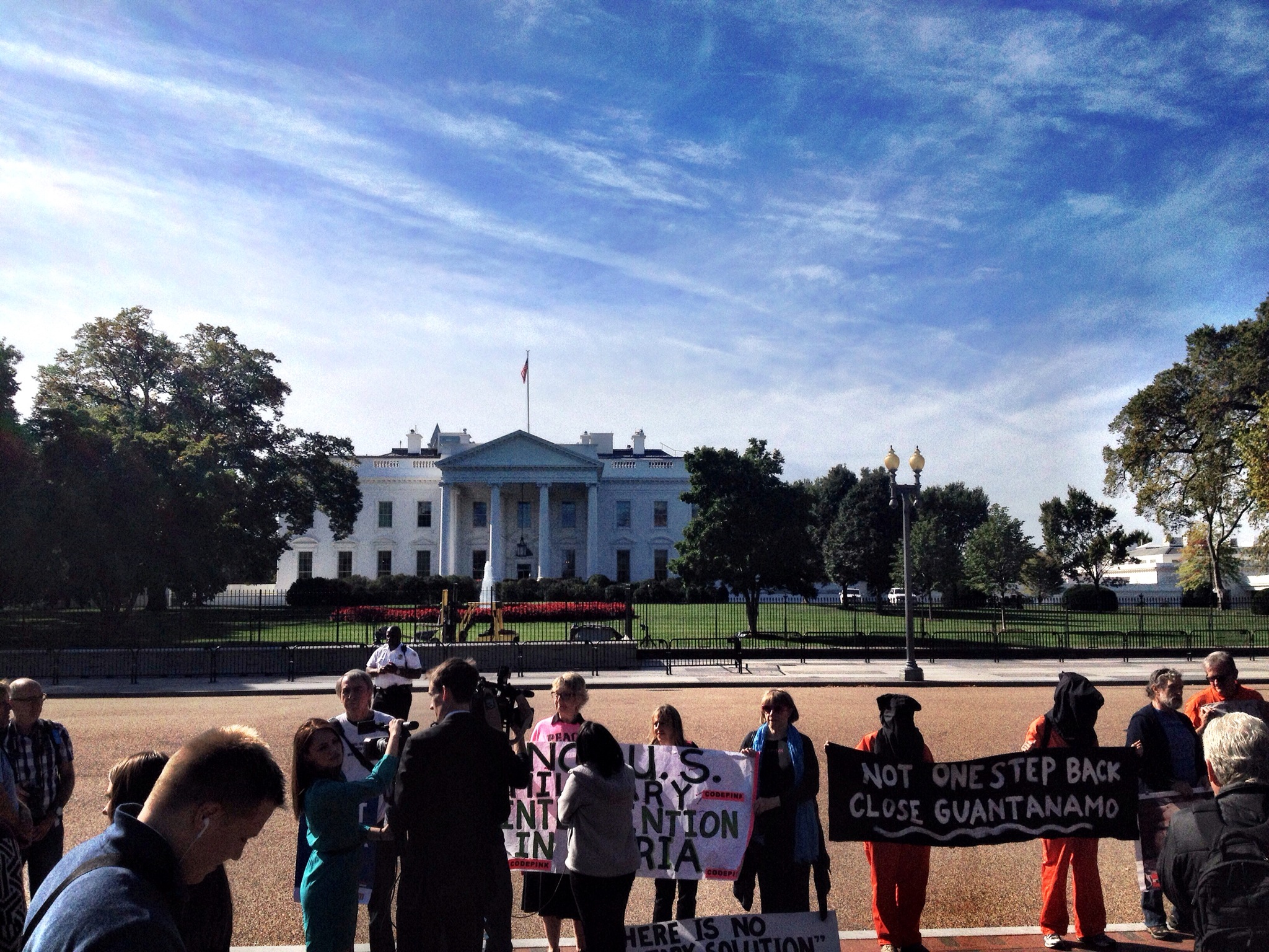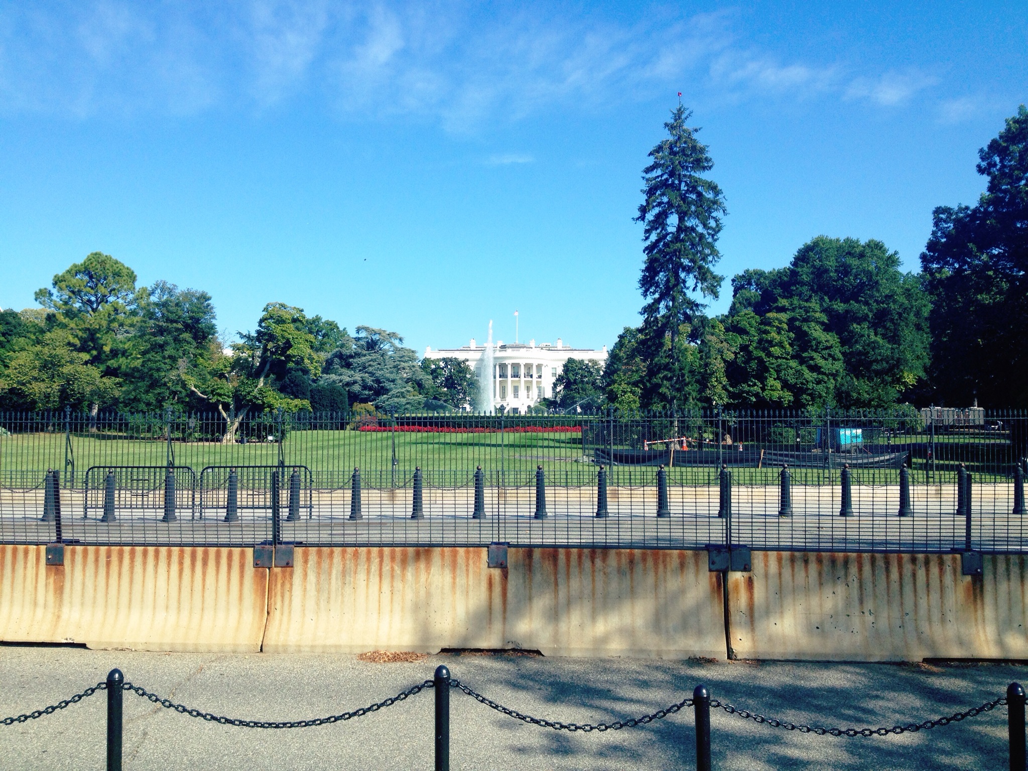 Vi åkte för att hälsa på presidenten. Men precis när vi kom var det jättemycket poliser och avspärrat överallt. Samtidig hörde vi en helikopter lyfta. Lite efter det så öppnades parken bakom upp igen och vi kunde gå närmare. Han åkte alltså precis när vi skulle hälsa på, tyket…