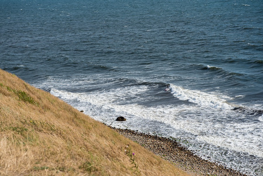Vågsurfarna gillade dock vädret. Ser ni han?