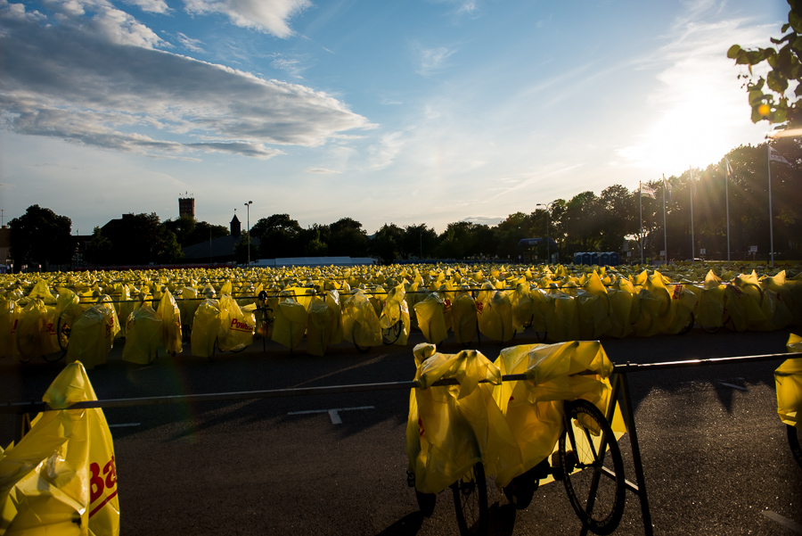 Så här såg tävlingsområdet ut kvällen innan. Alla var tvungna att lämna in sina cyklar och grejer dagen innan så allt var klart för start 7.00 dagen efter. De hade vakter hela natten för det var några miljoner som stod där.