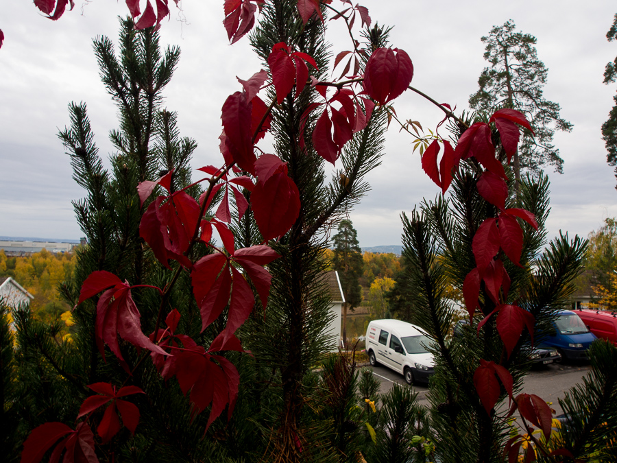 Eftersom jag hade kameran med mig kan jag äntligen visa vilka fina färger vi har utanför vårt hus, denna röda alltså ❤