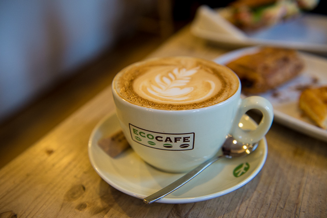 Sen efter några kvarter kom vi äntligen till vårt mål och jag fick min kaffe (plus frukostmacka och sånt där med såklart).