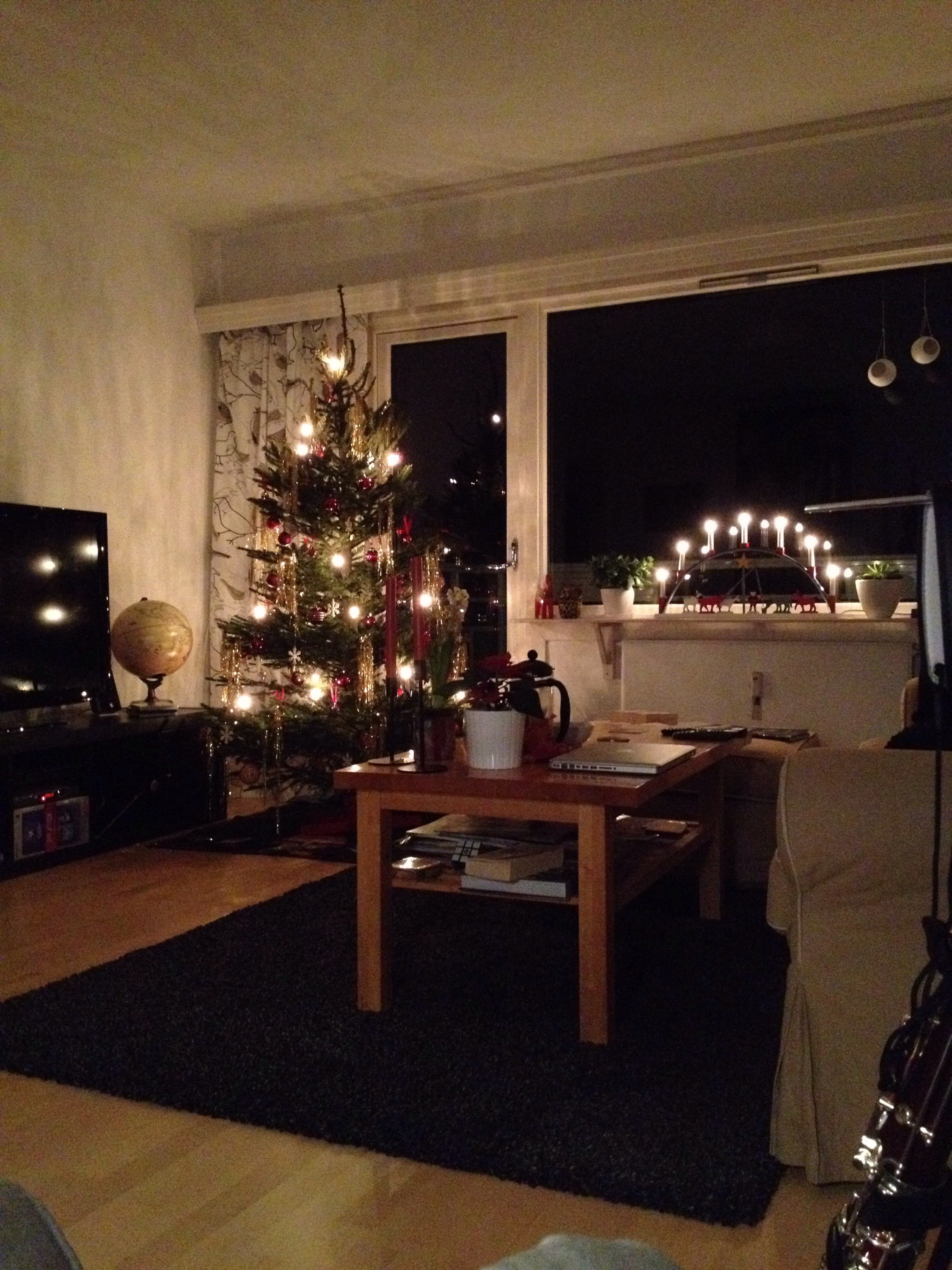 Såhär har min utsikt sett ut från fåtöljen under december. Det är så himla mysigt att ha en julgran som lyser upp, gillar verkligen det.
