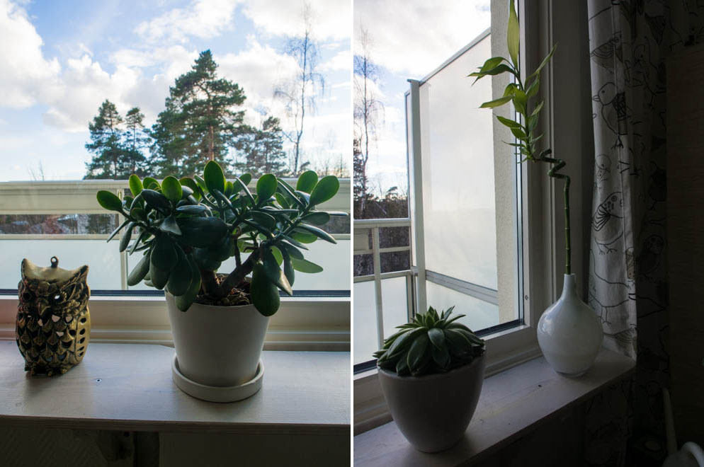 Sen innan har vi de här tjockbladiga växterna stående i fönstret tillsammans med en bambukvist.