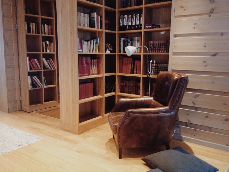 Finns även en fin läshörna, en sån här fåtölj kan jag tänka mig till mitt framtida bibliotek.