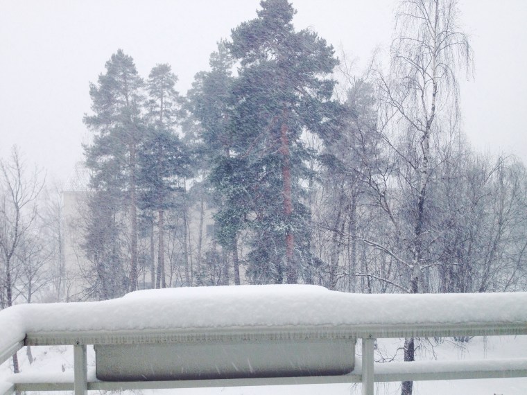 Igår somnade vi i en värld där det var vår för att idag vakna upp i ett dämpat vinterlandskap. Det låg redan en massa snö och det har sen vara fortsatt under nästan hela dagen. Det har varit snökaos i stan med bussar som inte gick på flera timmar och köer överallt. Men för mig som ha gåavstånd till jobbet så gjorde det inget, jag njöt nästan av det dämpade ljudet och härliga ljuset som blev.