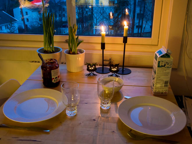 Så nu är vi laddade med energi igen. Idag vaknade vi att det blåste kuling ute så det blev ingen längdskidetur så efter lite slappande i soffan och fika är vi nu på väg hem.