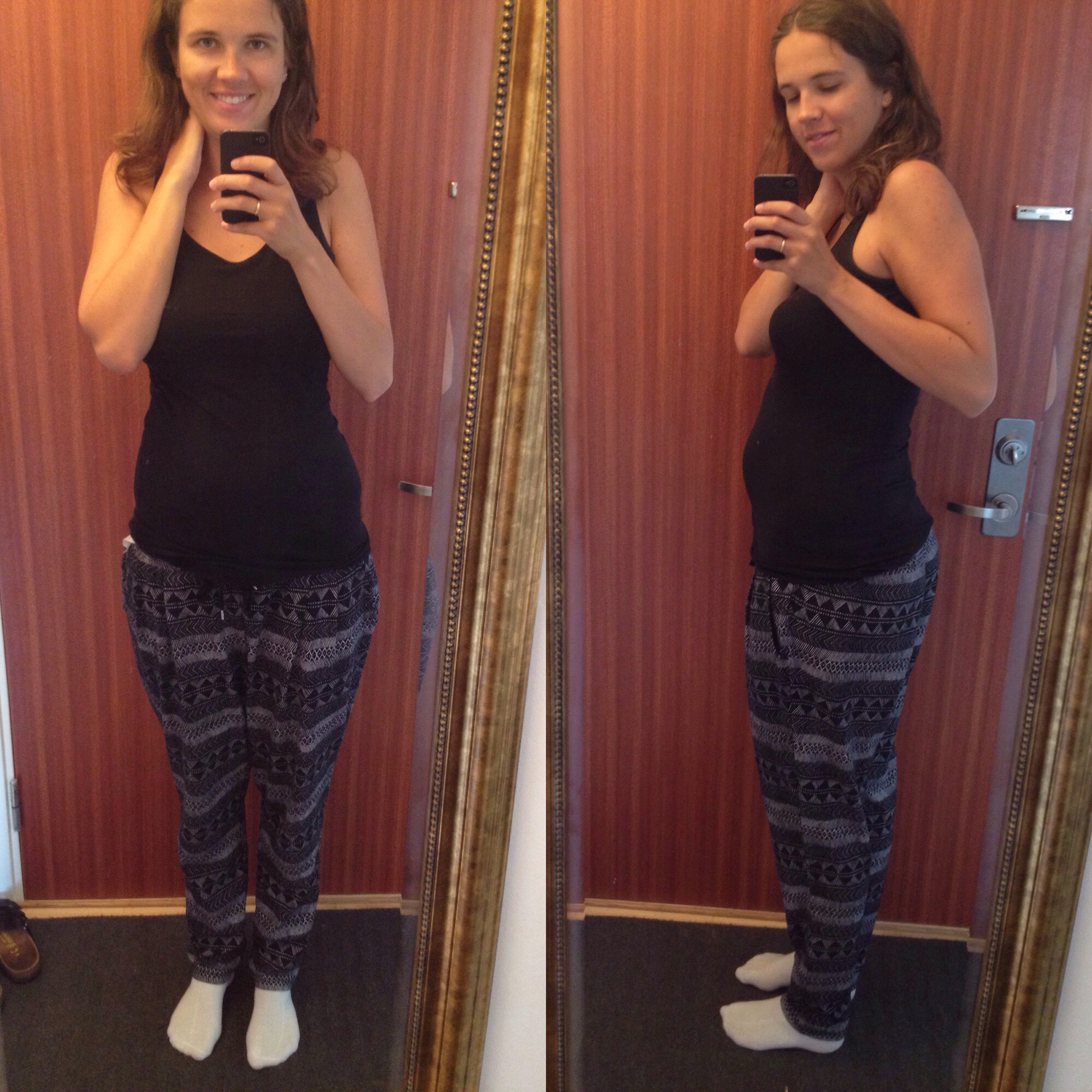 Annars så växer magen väldigt mycket nu, kändes som den tog ett skutt för ett par veckor sen. Men så fort jag ska ta kort på den så ser den ju ganska liten ut… Ja ja, den lär ju bli tillräckligt stor tids nog.