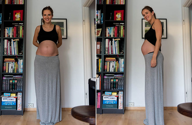 2 oktober, i vecka 27. Här ser ju magen faktiskt ut som en gravidmage.