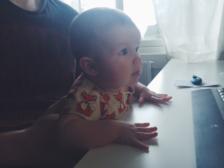 Sen sitter hon gärna i pappas knä framför datorn också, så en kan säga att hon är ett barn av sin tid…