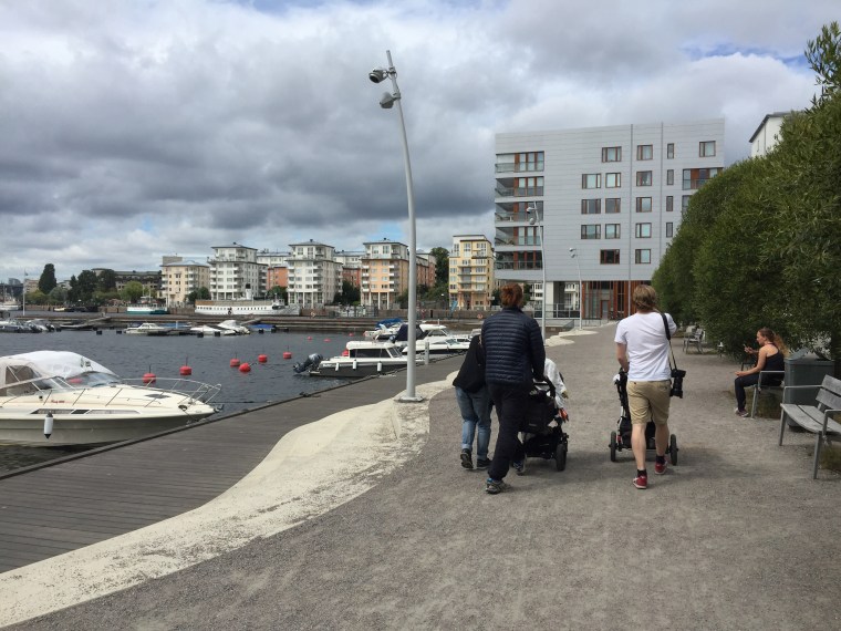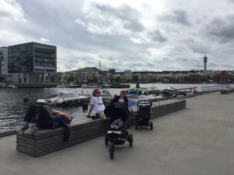 Igår packade vi vagnarna och begav oss mot bryggan för att ta båten till Djurgården. Davids syster med familj bor i Hammarby sjöstad och det är ju perfekt att kunna ta båten in till stan.