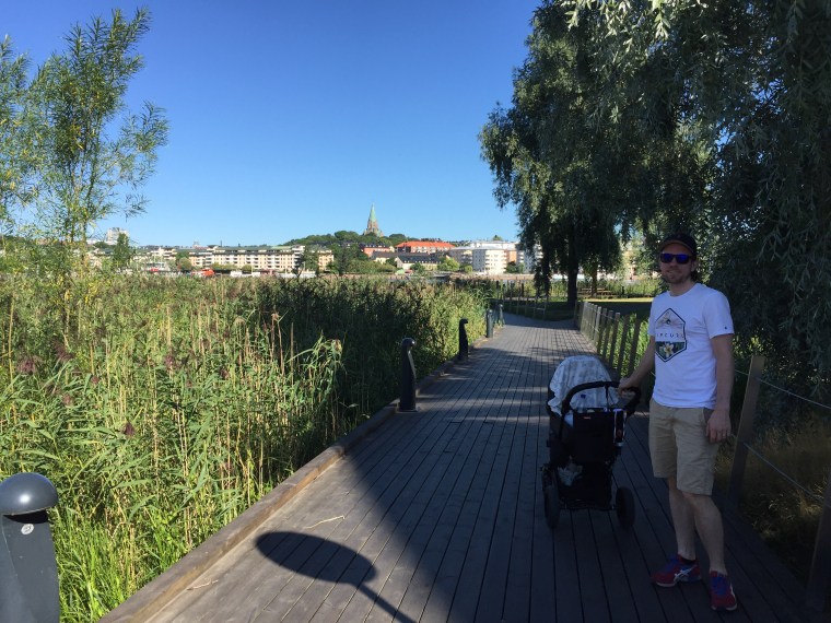 Vi promenerade runt med varsin barnvagn och de små somnade så skönt. De vaknade dock igen efter en stund men var fortfarande trötta så då fick det bli en andra promenad. En andra promenad innan klockan ens var nio. Hej småbarnsliv.