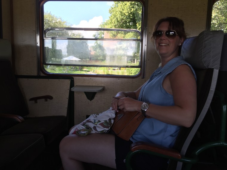 Det stod även en gammal tågvagn, som det stod Gräfsnäs på, i trädgården som vi såklart kollade in.