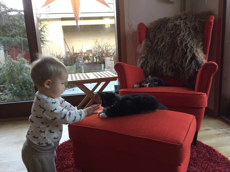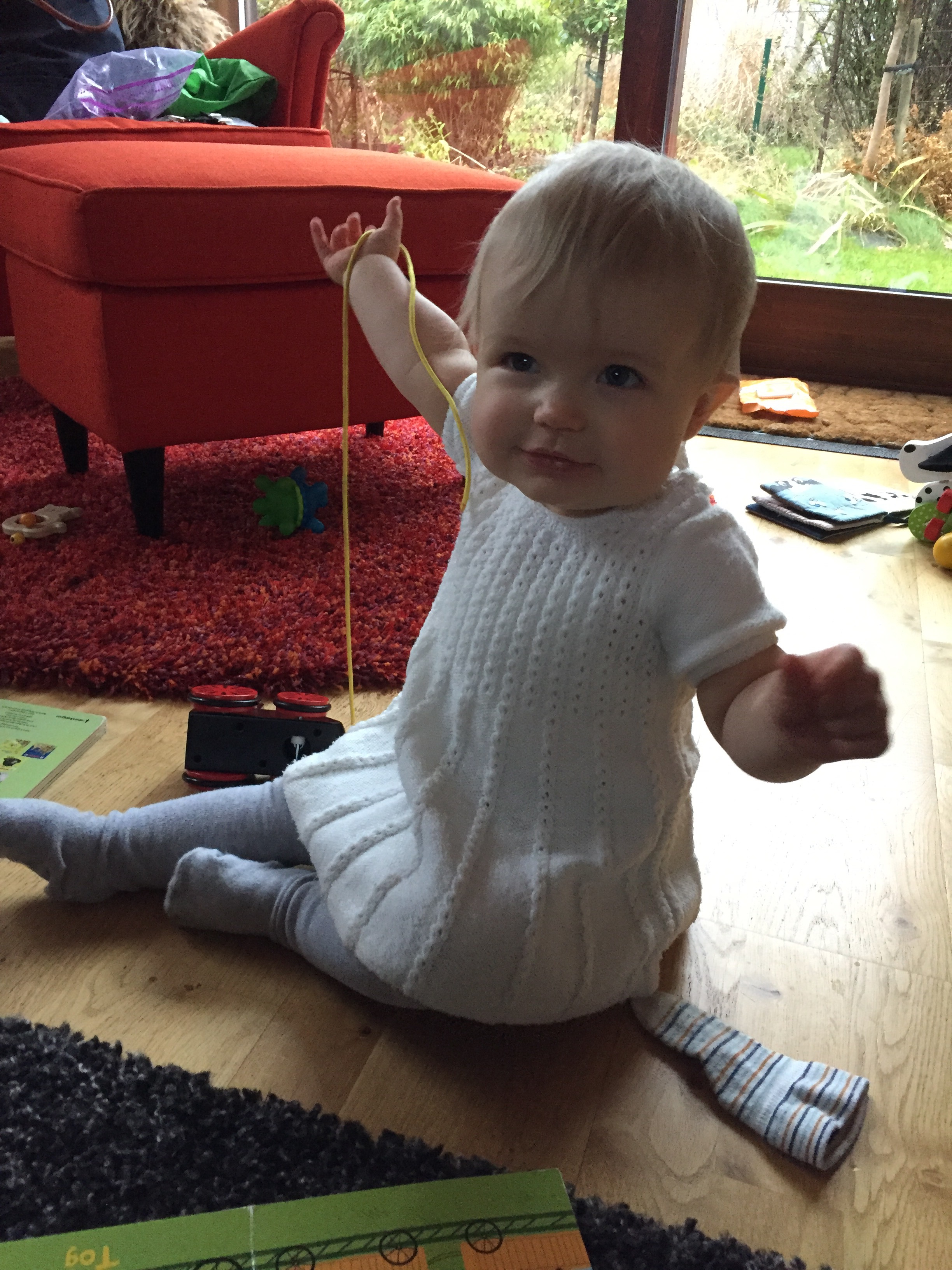 Det är roligt att kolla ut genom fönster och att leka tittut under en filt. Och nu när pianot ligger på golvet (nedmonterat pga flytt) så är det den bästa leksaken.