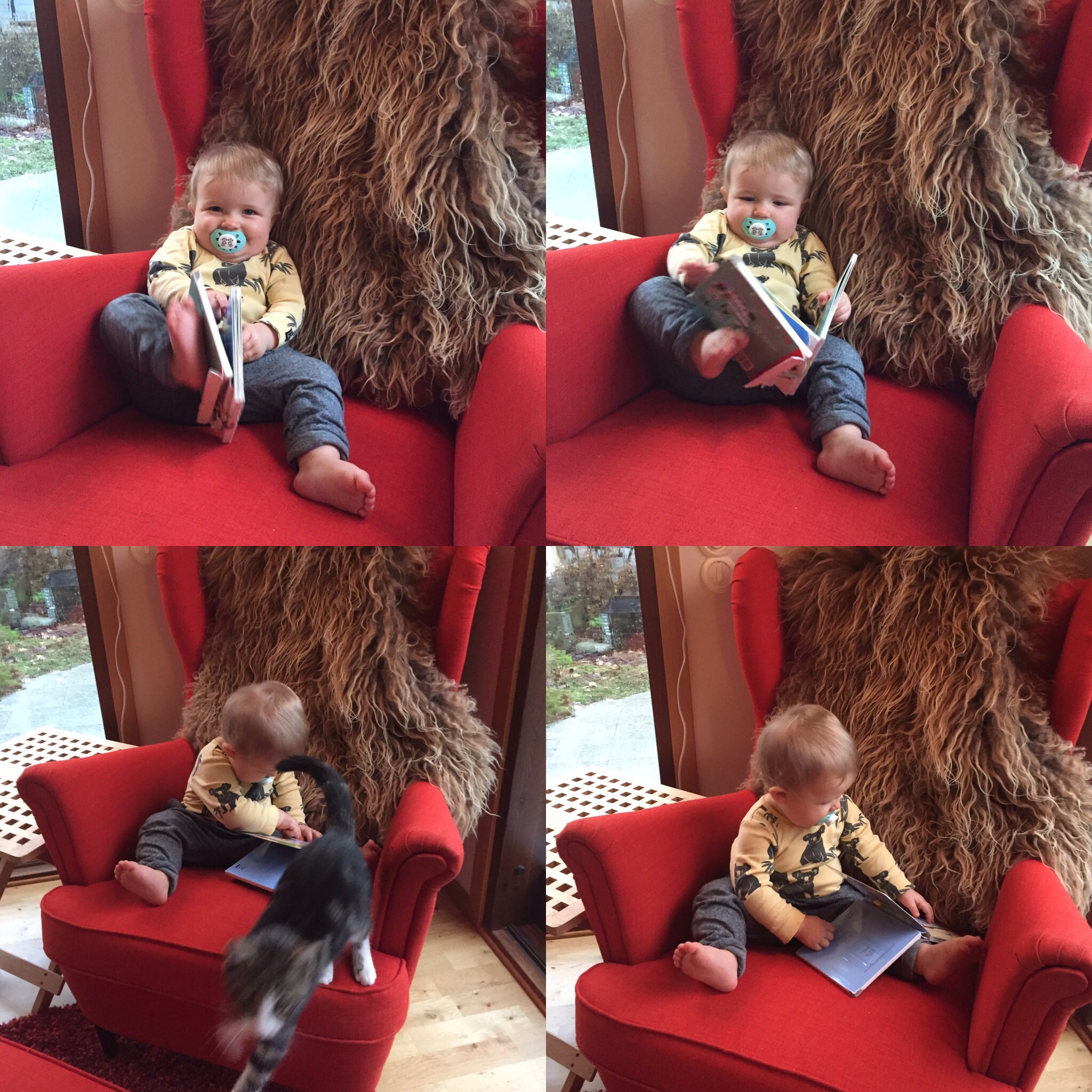 Jag satte Ilse i fåtöljen och gav henne en bok och då satt hon där och var nöjd länge! Såg så mysigt ut!