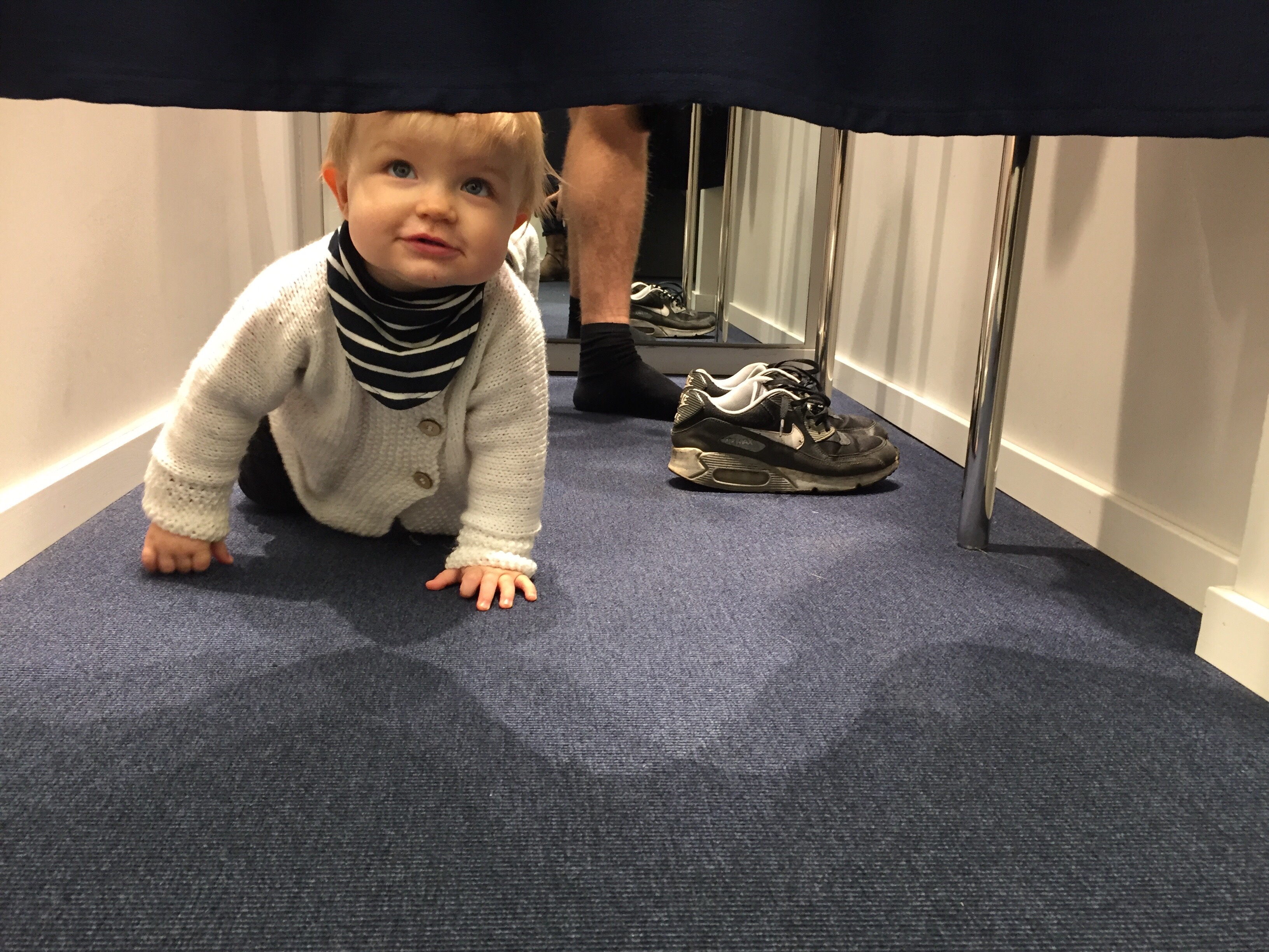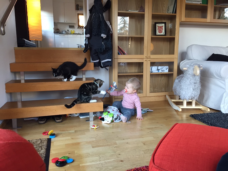 Hon känns verkligen mer och mer som ett barn hela tiden, istället för en bebis. Hon reser sig upp hela tiden och har släppt och balanserat några gånger. Hon står på knä utan problem och trapporna utgör inget hinder längre, även om vi får va lite med när hon ska gå nedåt.