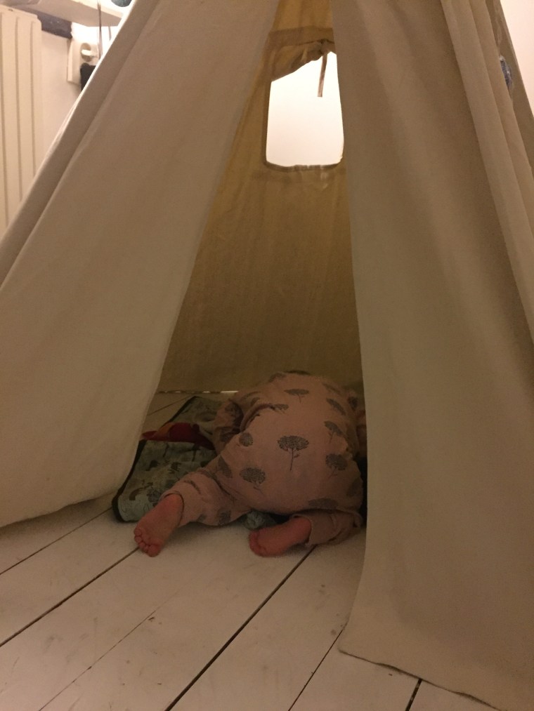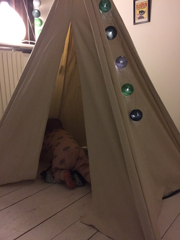 En kväll tog Ilse sin filt och kröp in i sitt tält och la sig, gullunge ❤️