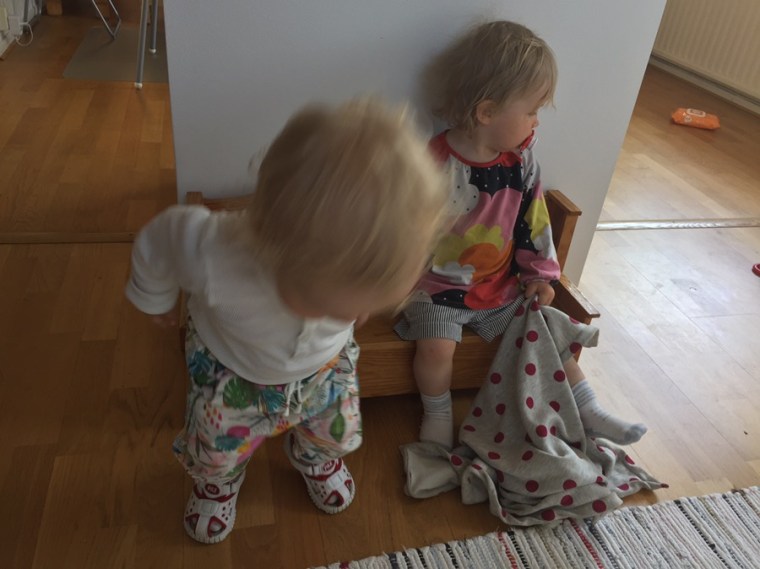 Annars var ju helgen trevligare med besök av Ilses faster, kusin och farmor, även om vi var lite småhängiga då med. Men se vad söta de små är: