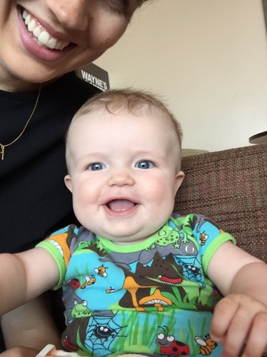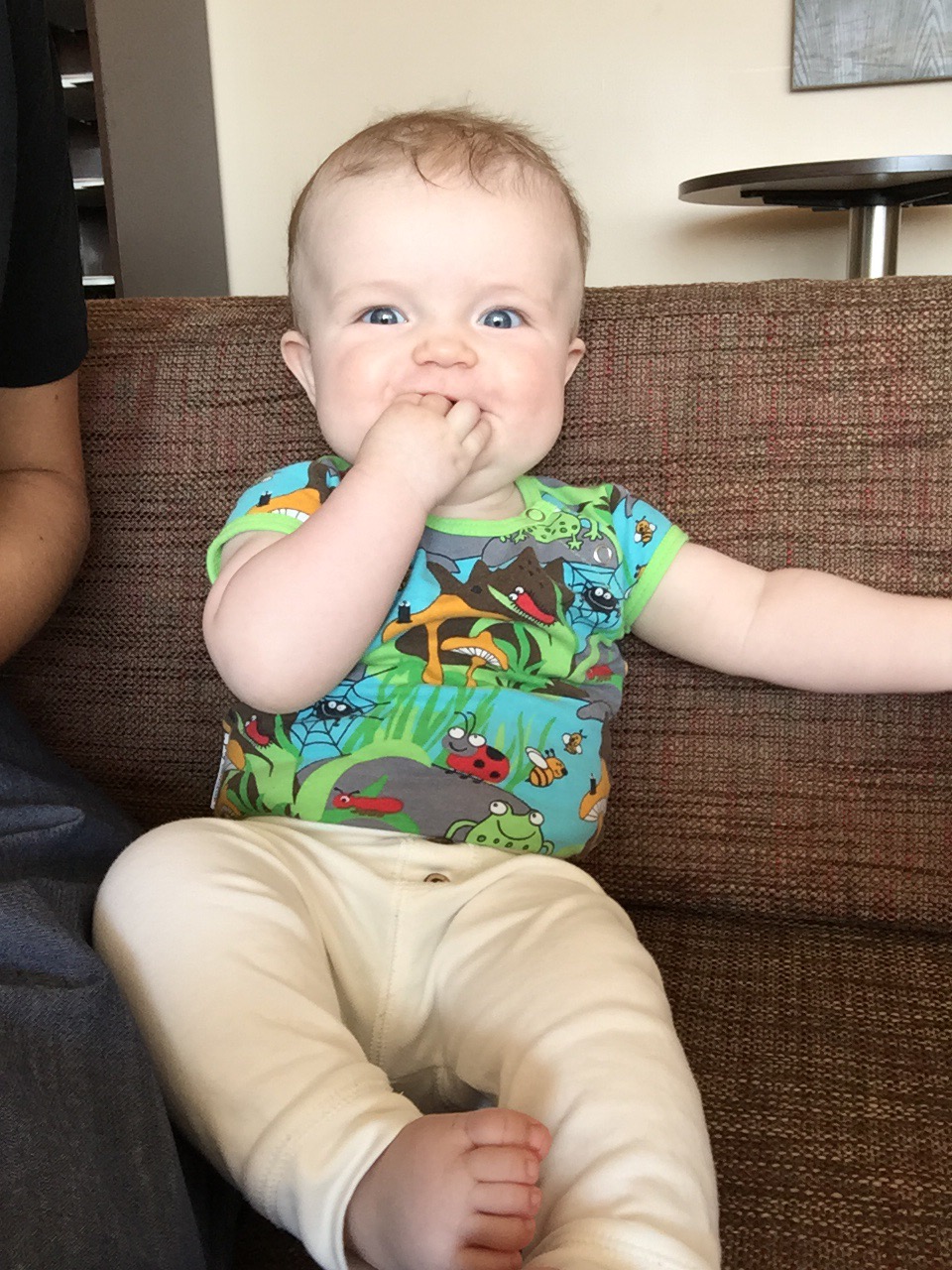 Vi avslutar inlägget med en selfie från skötbordet. Med shortsen (jordgubbsshorts!) på huvud för det var kul…