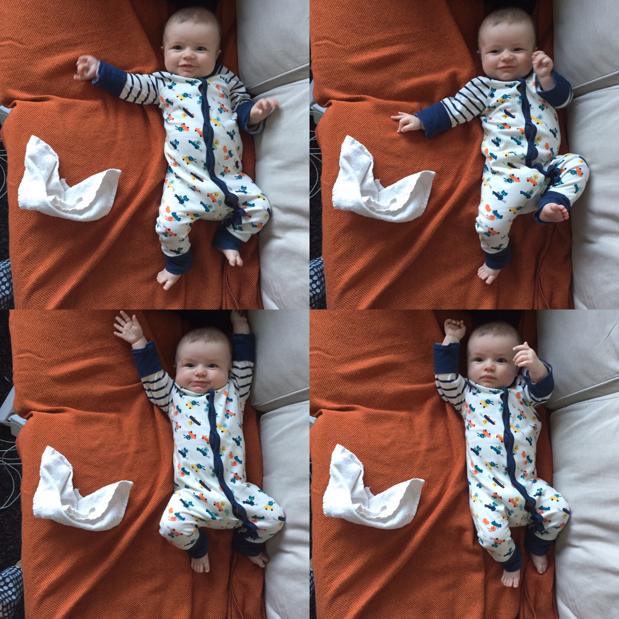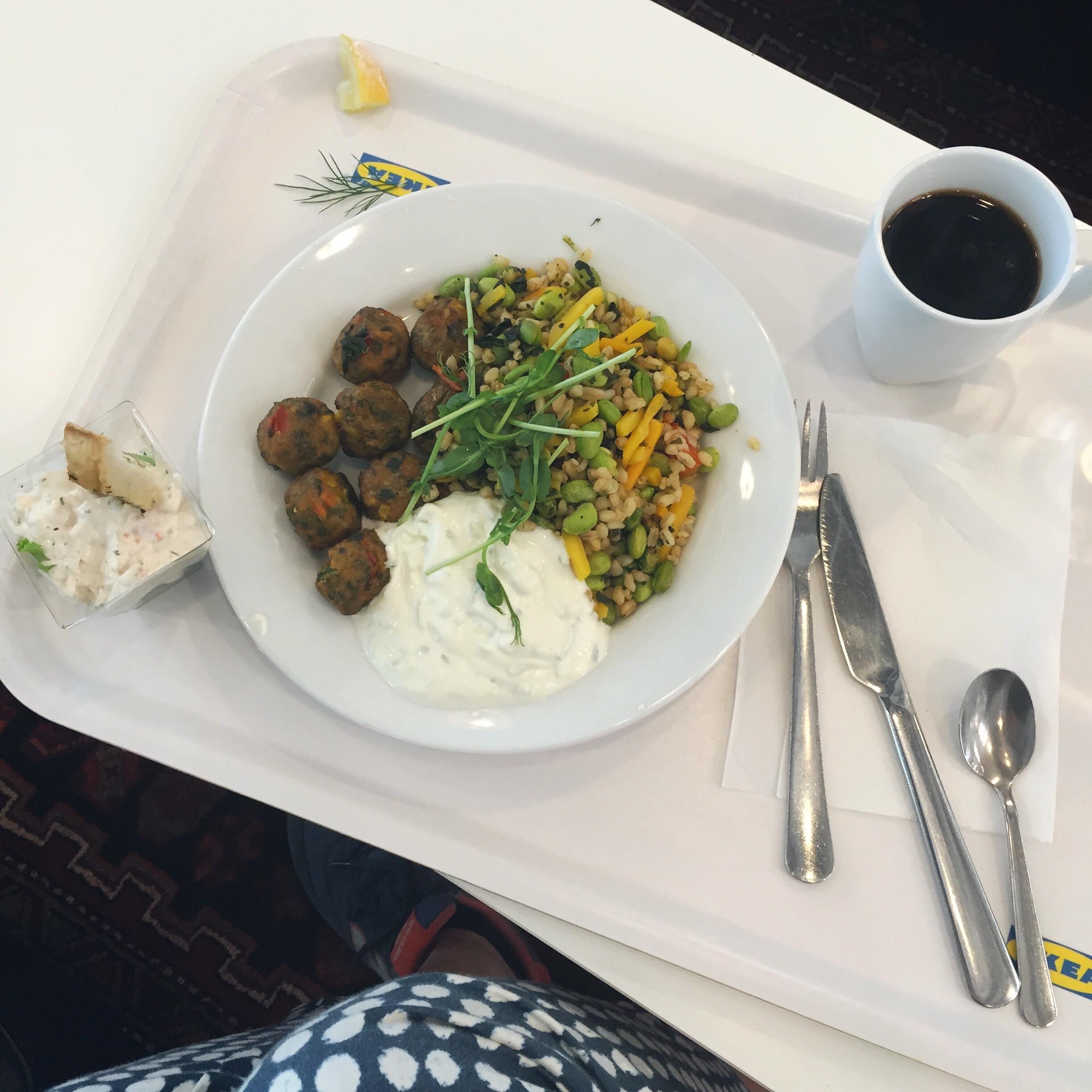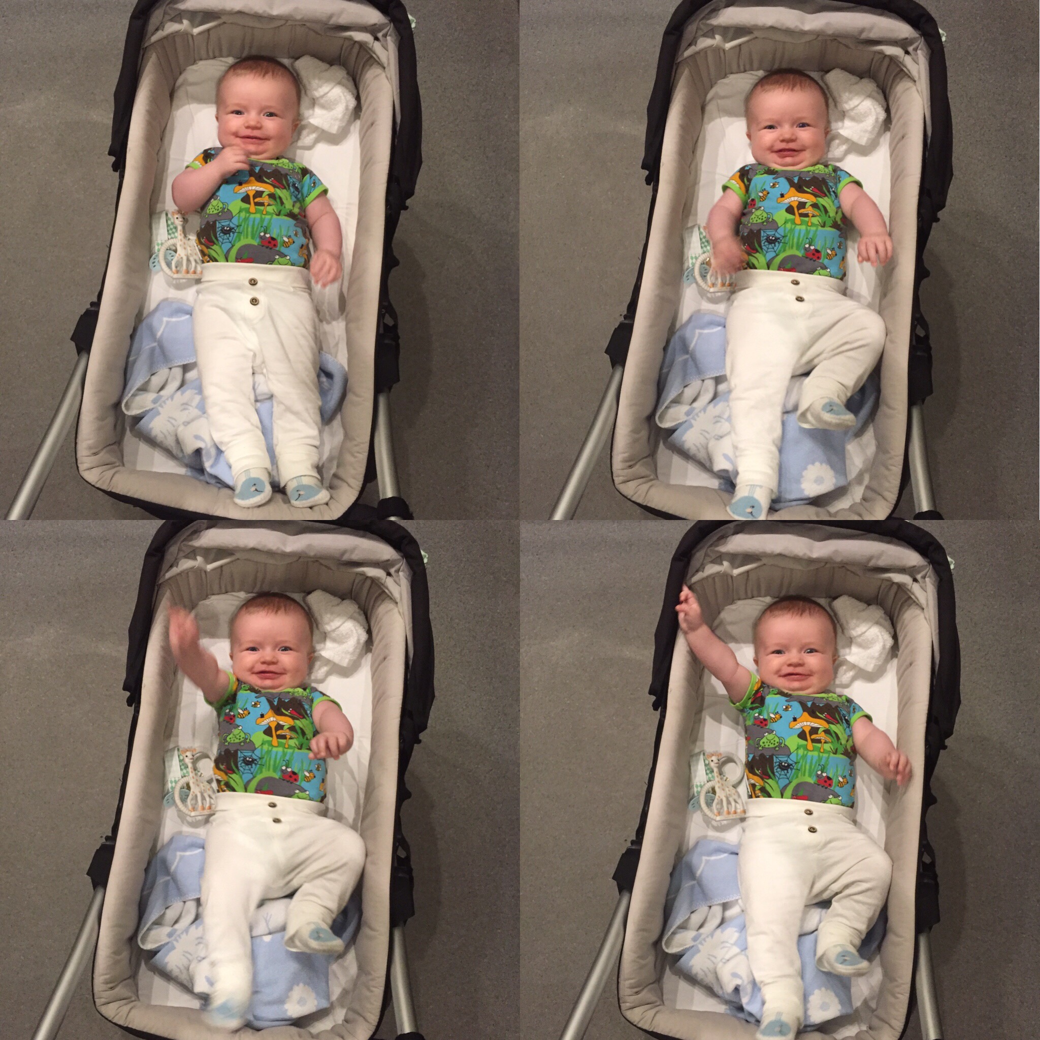 11.42 Vi stannade på Ikea torp och såhär glad blir en när en får sträcka ut sig i vagnen efter ett par timmar i bilen.