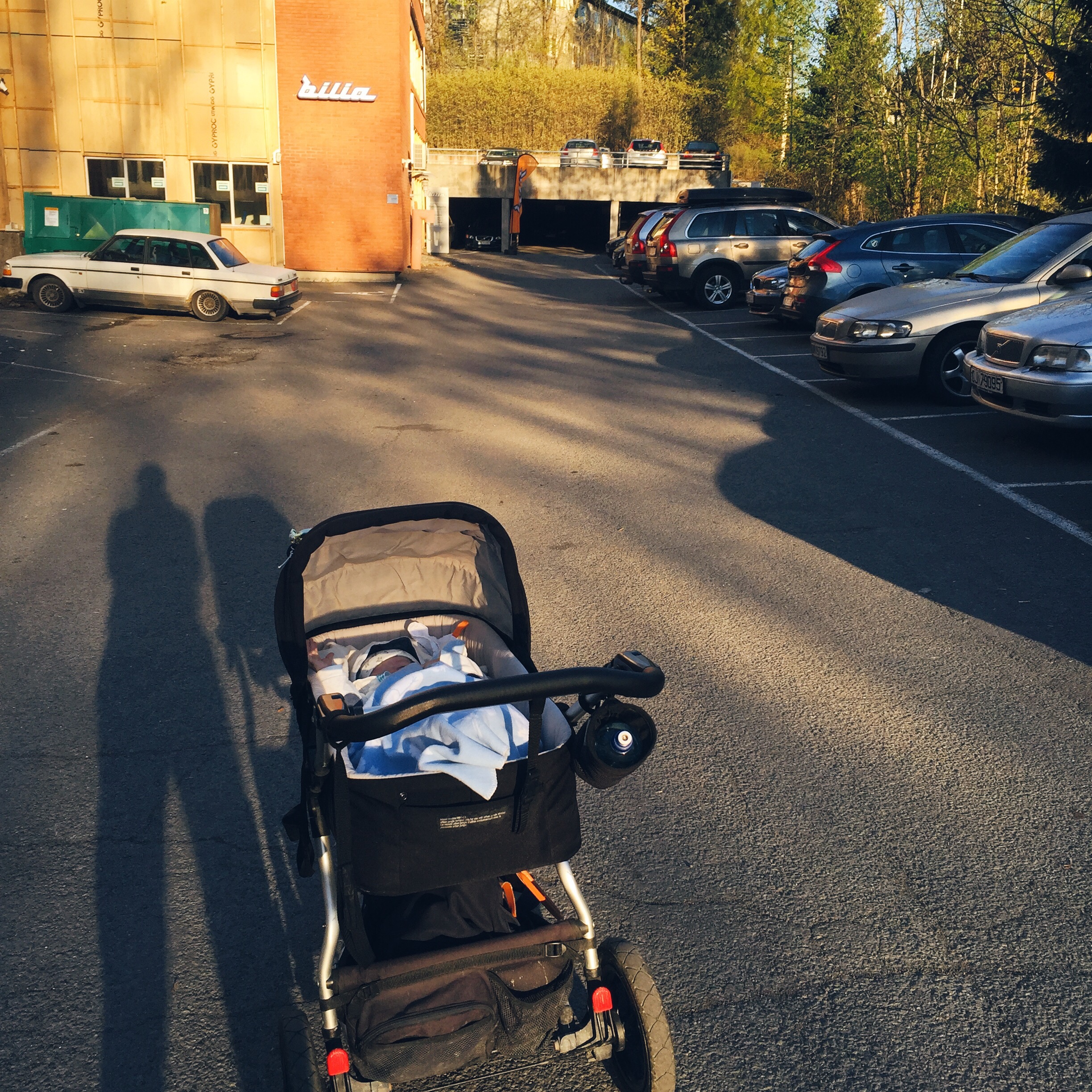 Vi tog en promenad till lanthandeln, tog precis över halvtimmen enkel väg, och köpte mjölk. Blev ett ordentligt träningspass då barnvagnen är tung och backarna många och branta.