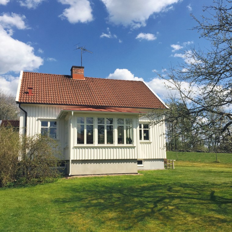 Vi har hängt ett par dagar hos mina föräldrar på Nabben. Sovit i husvagn, badat i sjön, hälsat på fåren och hönorna, tagit middagsluren under äppelträdet, haft med våra katter, lekt, ätit paj på rabarber och jordgubbar, tittar på Morden i Midsomer, träffat mina bröder, tvättat rent en kökssoffa som ska bli vår, grillat och haft det allmänt gött. Det är fint med semester.