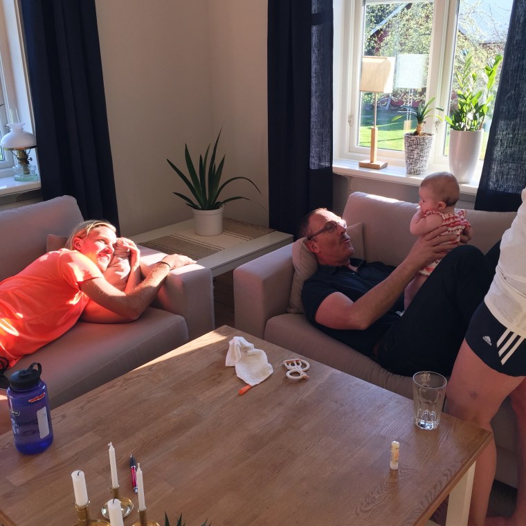 19.08 hade vi tagit oss in och både Ilses morfar och morbror gav henne en massa uppmärksamhet.