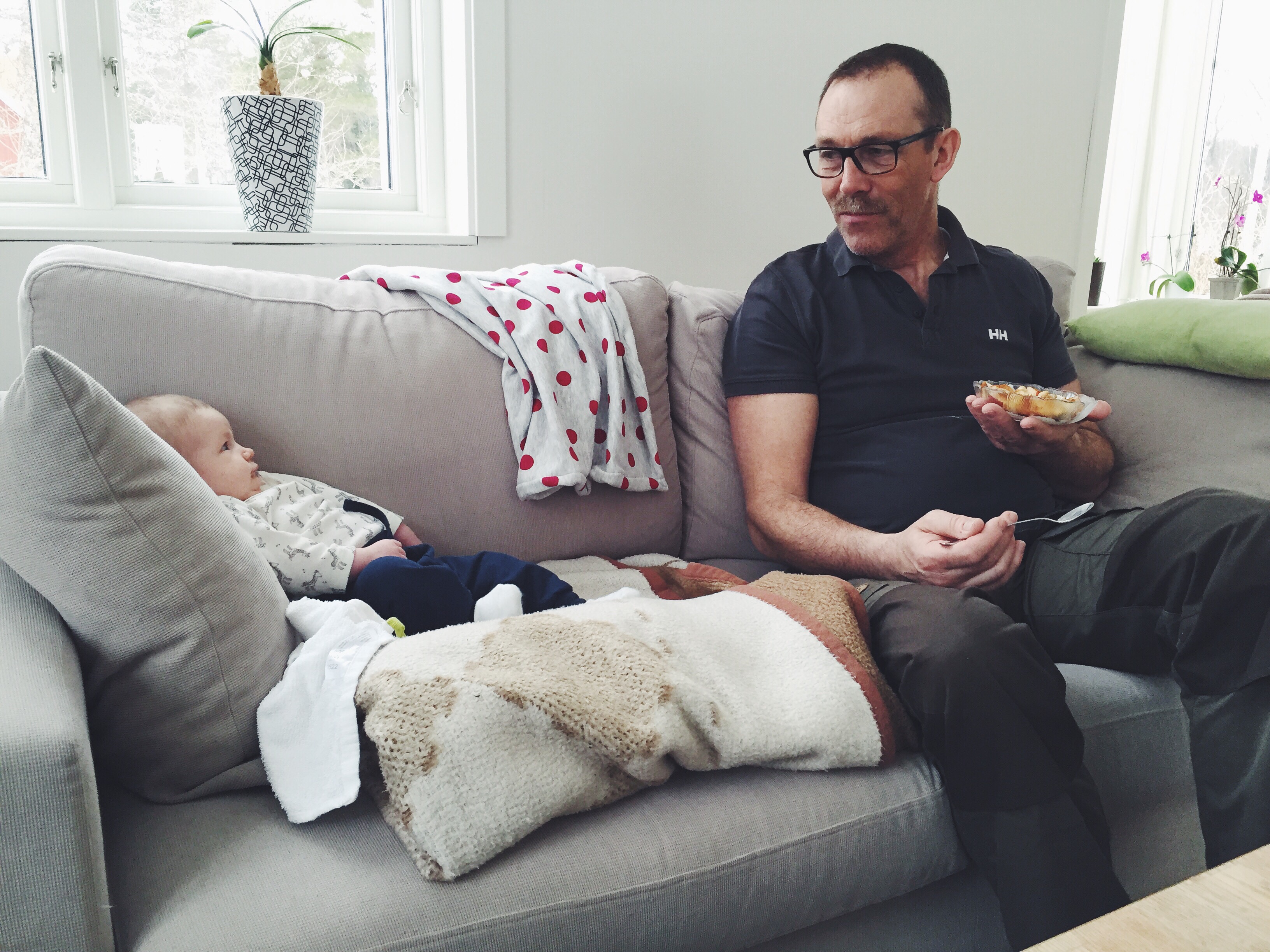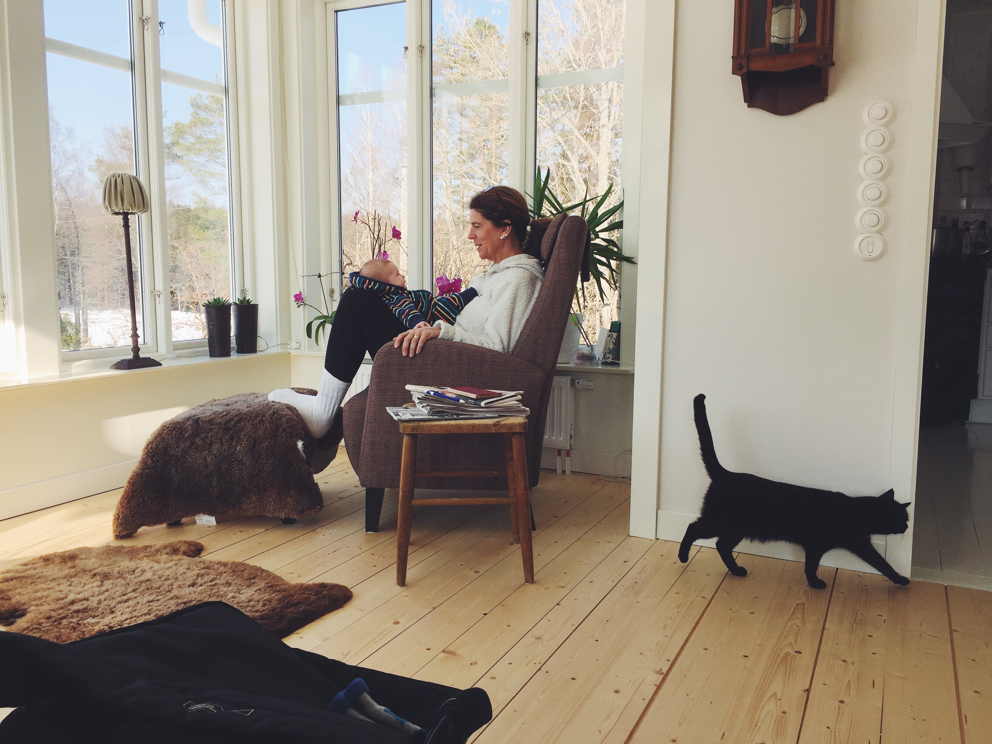 På eftermiddagen åkte vi vidare till mina föräldrar där det första vi gjorde var att gå ut och hälsa på de små lammen som kommit. Tycker den här bilden är så himla fin!