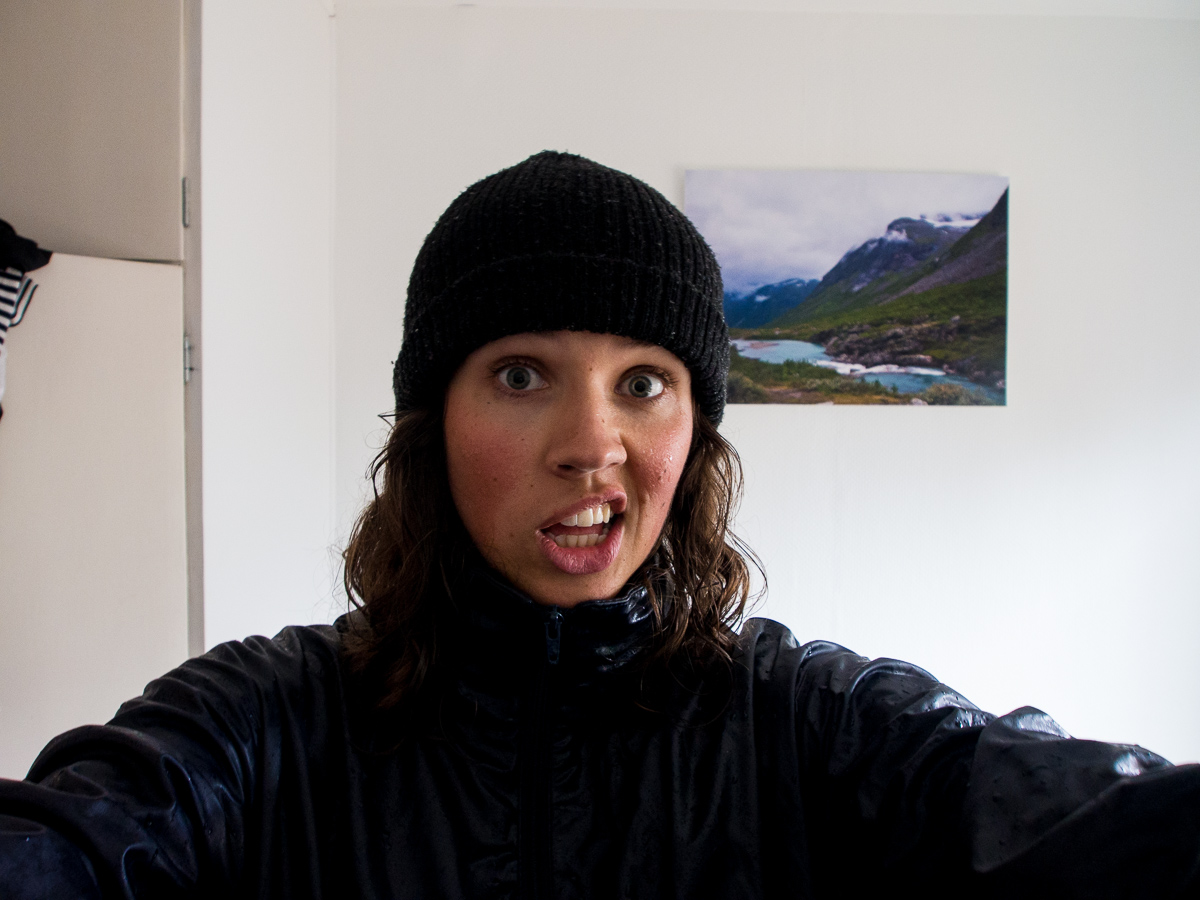 Tur att en har en garderob med kläder-för-alla-väder. En behöver inte skämmas heller för halva befolkningen cyklar här och de har rätt kläder de med, det behöver en aldrig tvivla på. Om det är något som norrmännen är bra på så är det att lägga en massa pengar på all sorts utrustning en möjligtvis någon gång kan behöva. Tur att en är scout så en redan har allt då. 😛