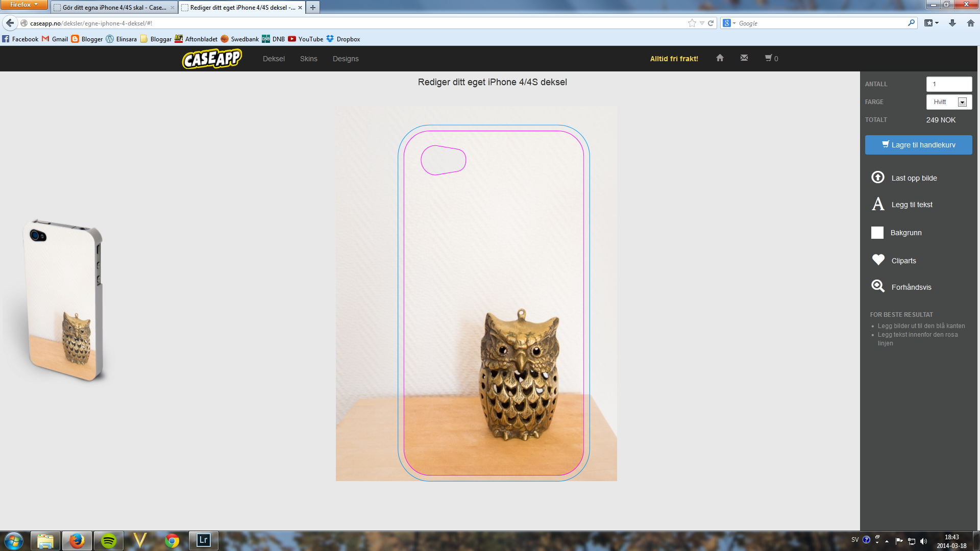 För ett tag sen bestämde jag mig för att skaffa ett mobilskal istället för fodralet jag haft innan. Jag hittade inget jag riktigt gillade men fann istället en hemsida där en kunde designa ett eget!
