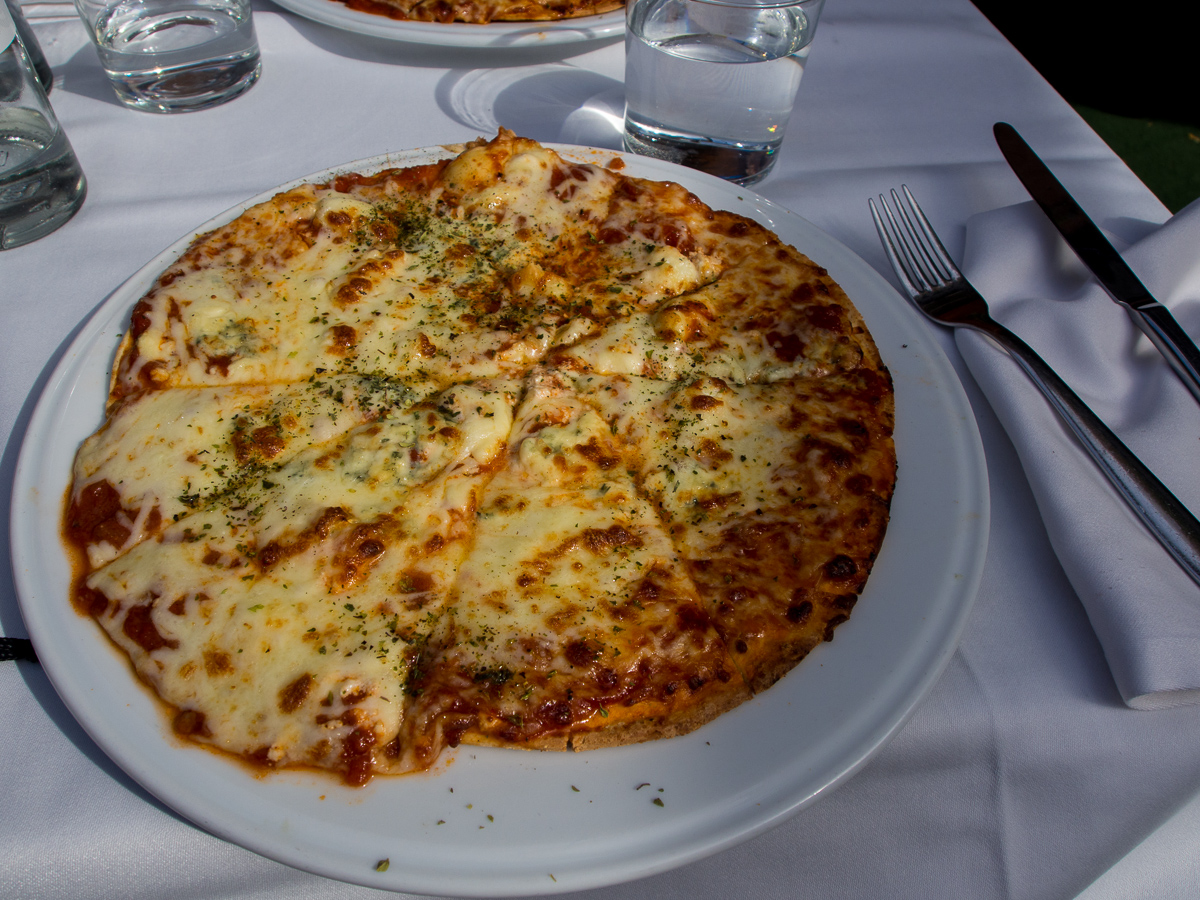 Ska en gå på match måste en äta ordentligt för att orka, så vi började med varsin pizza.