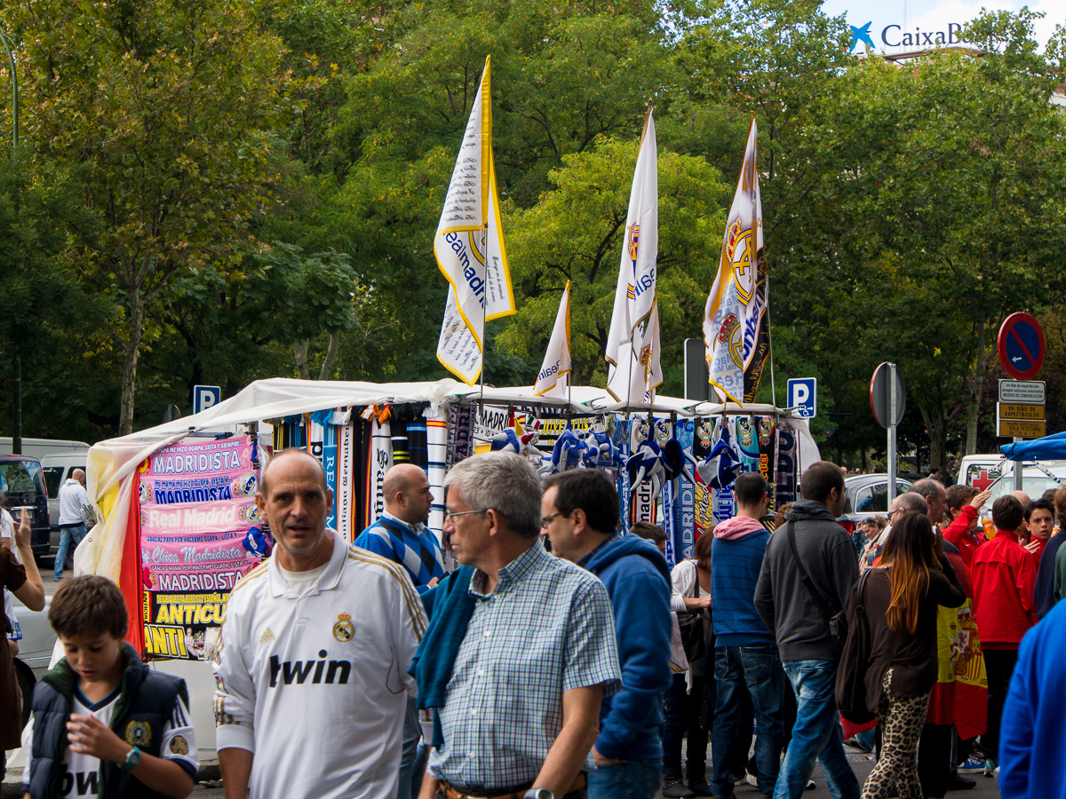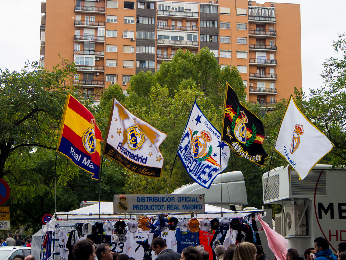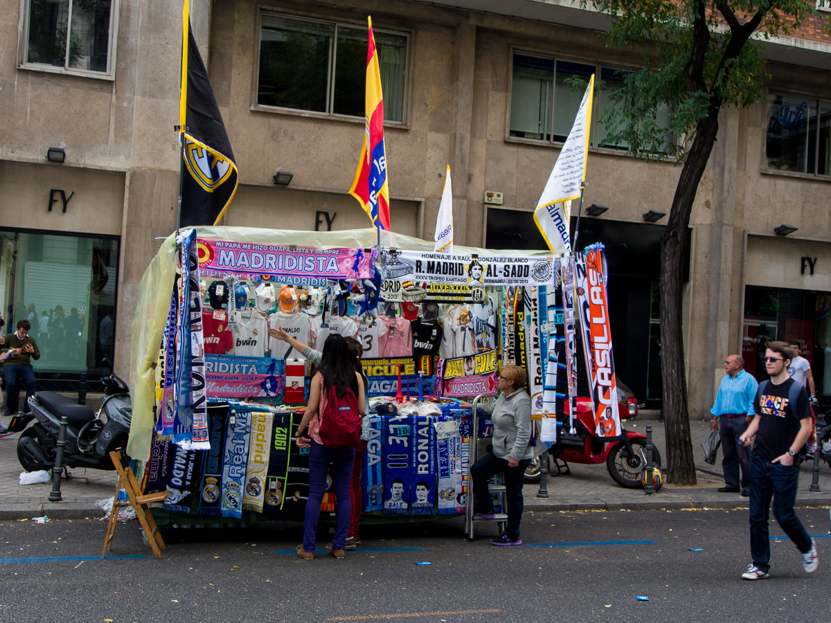 Utanför arenan såldes tröjor, halsdukar och massa annat i alla färger. Varför nöja sig med Real Madrids egna när en hellre vill ha någon annan färg liksom? Jag köpte dock inget, tycker en Ronaldo-tröja i garderoben är rätt lagom (vill ju inte verka desperat liksom).