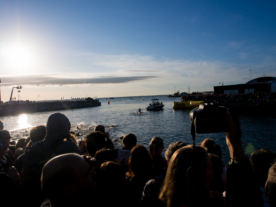 De sista 200 metrarna av simningen.